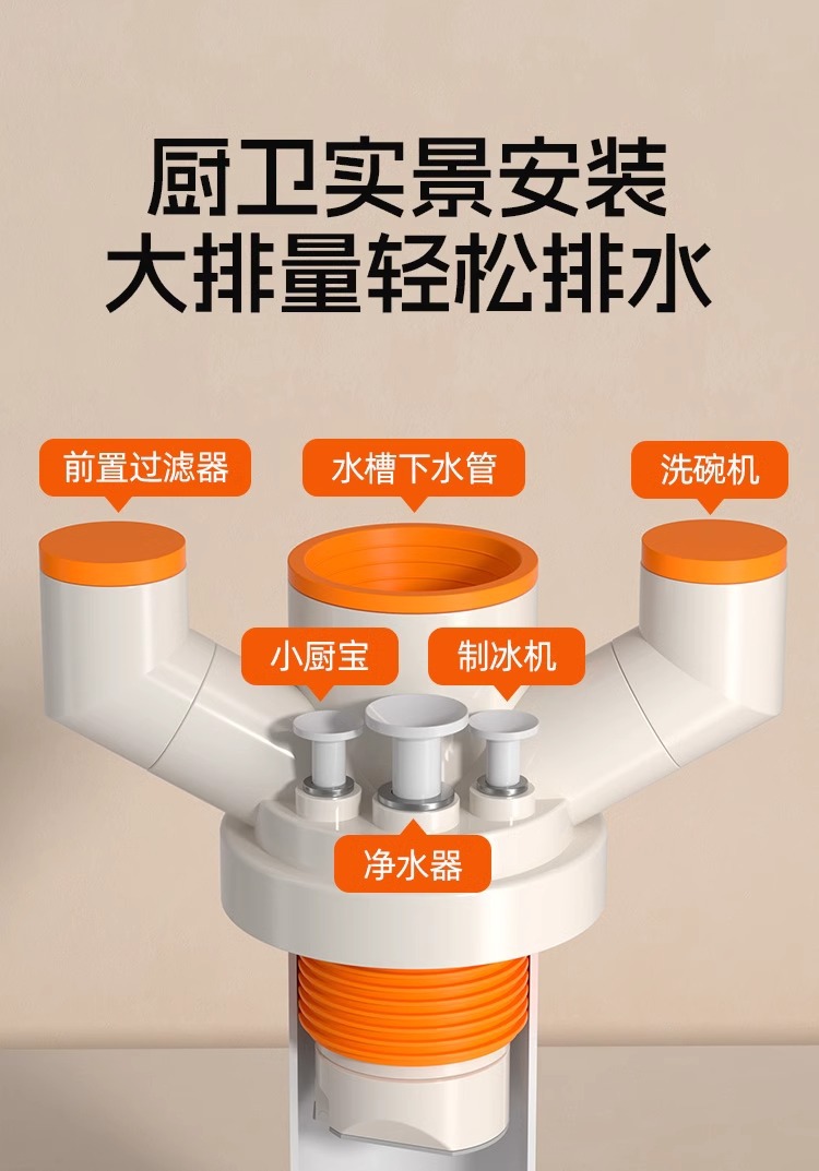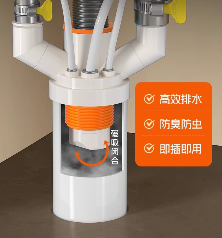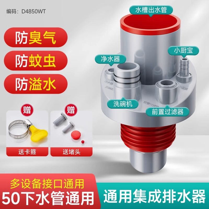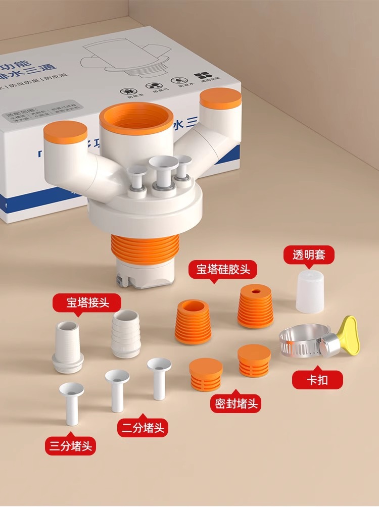 3 방향 배수 파이프 주방 싱크대 식물성 분지 식기 세척기 배수 파이프 냄새 방지 다기능 배수 밀봉 플러그