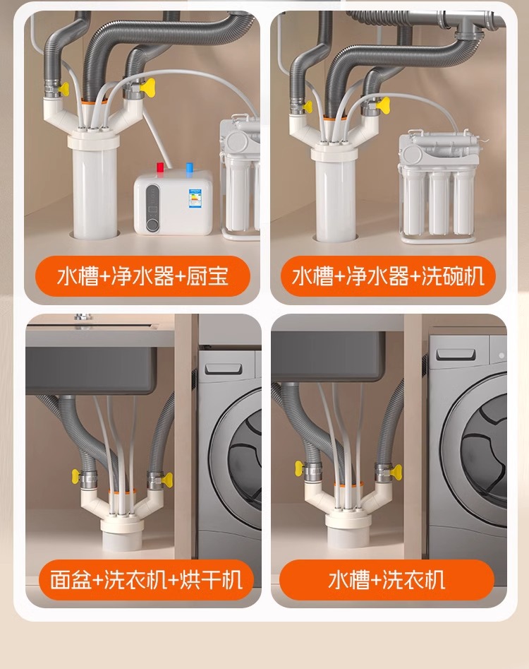 • 주황색 및 흰색 모델 [주방 4방향](통합 배수 및 냄새 방지 플러그)에는 액세서리 전체 세트가 함께 제공됩니다.