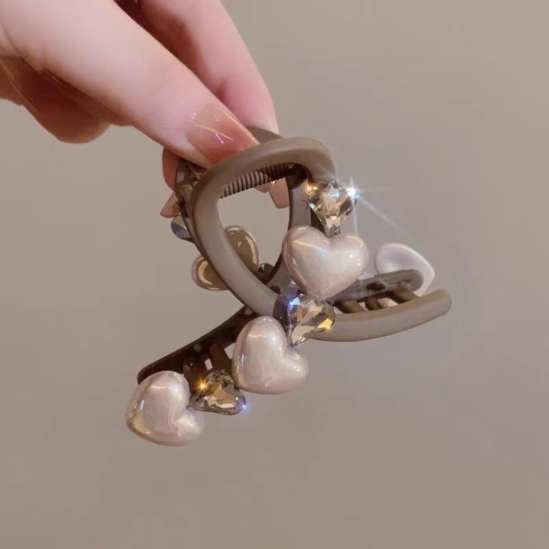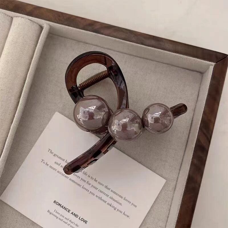 轻奢高级感咖色珍珠水钻抓夹女后脑勺盘发鲨鱼夹大号发夹头饰发卡
