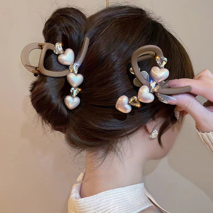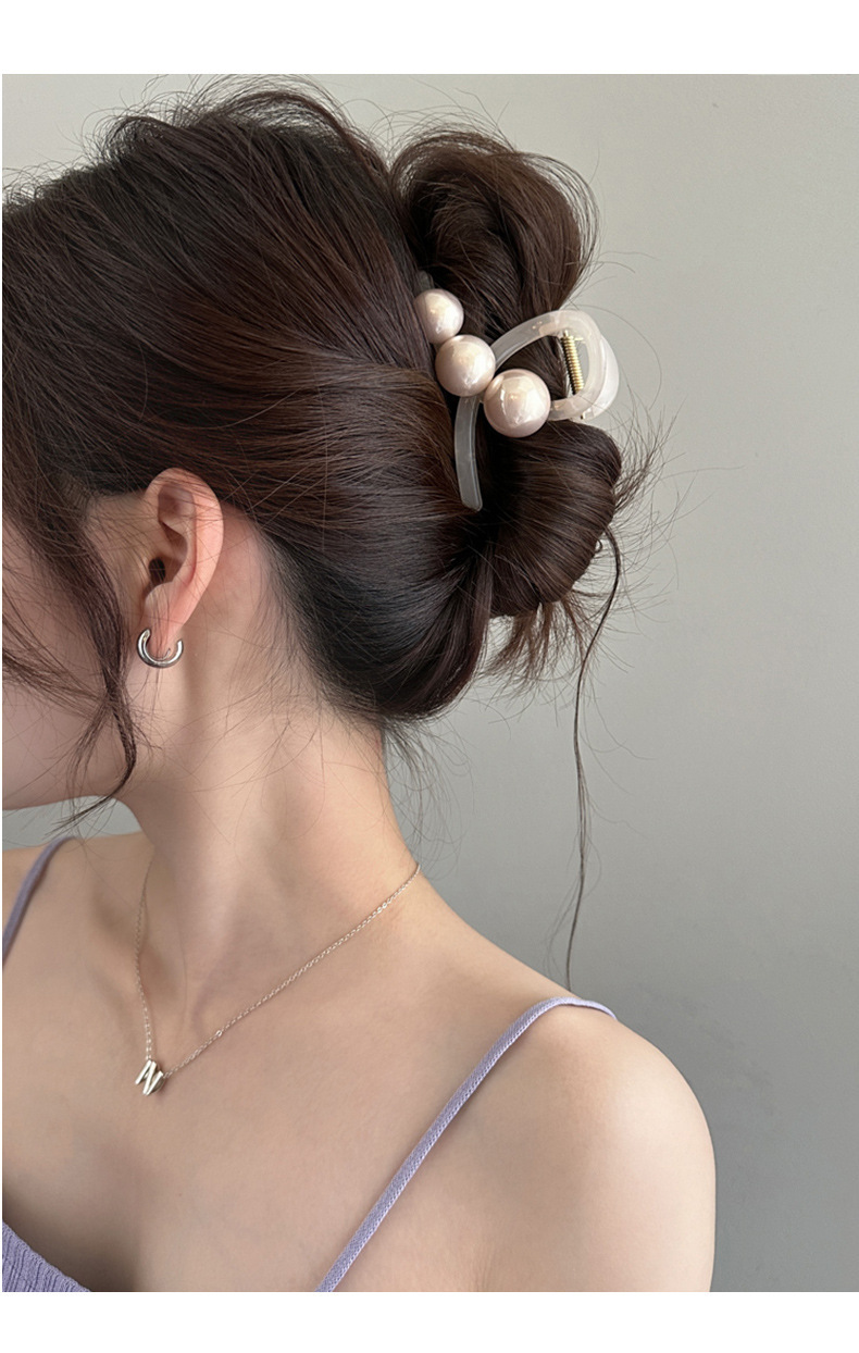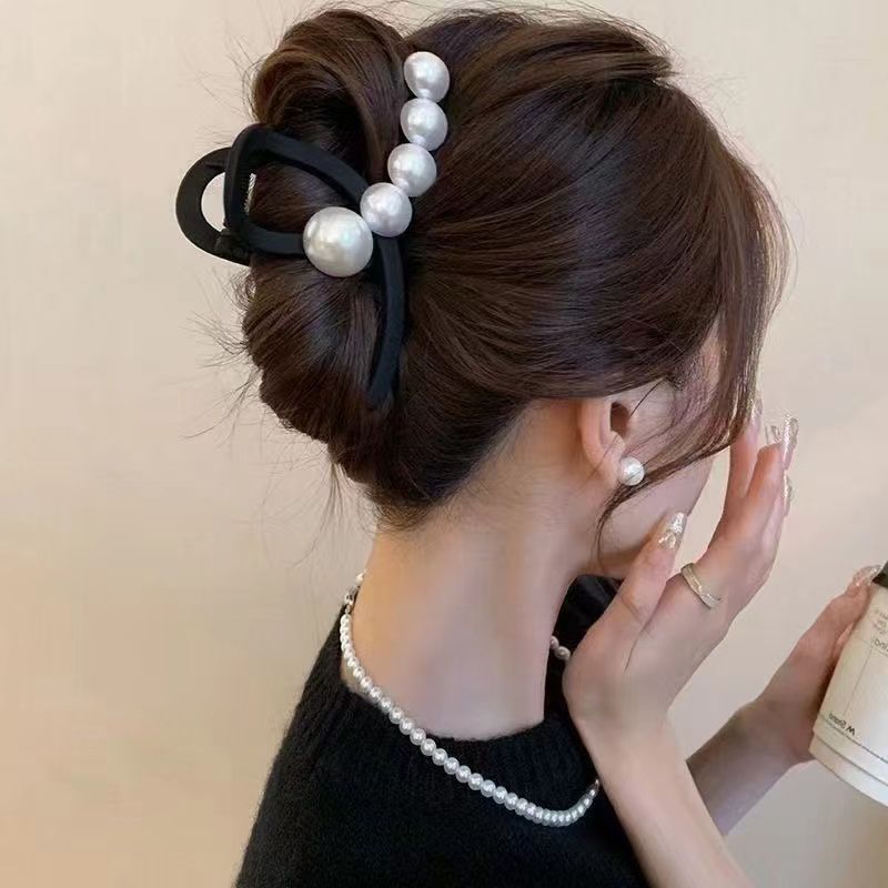 우아한 우아한 진주 그랩 클립 중간 머리 상어 클립 헤어핀 여성의 2024 새로운 스타일 헤드 하이 엔드 헤어 액세서리스토어 가기