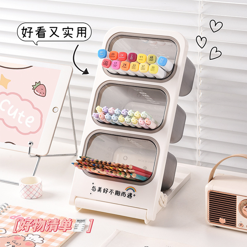 경사 데스크톱 저장 상자 사무실 책상 대용량 펜 코너 가정용 멀티 구획 문구 화장품 보관 상자스토어 가기