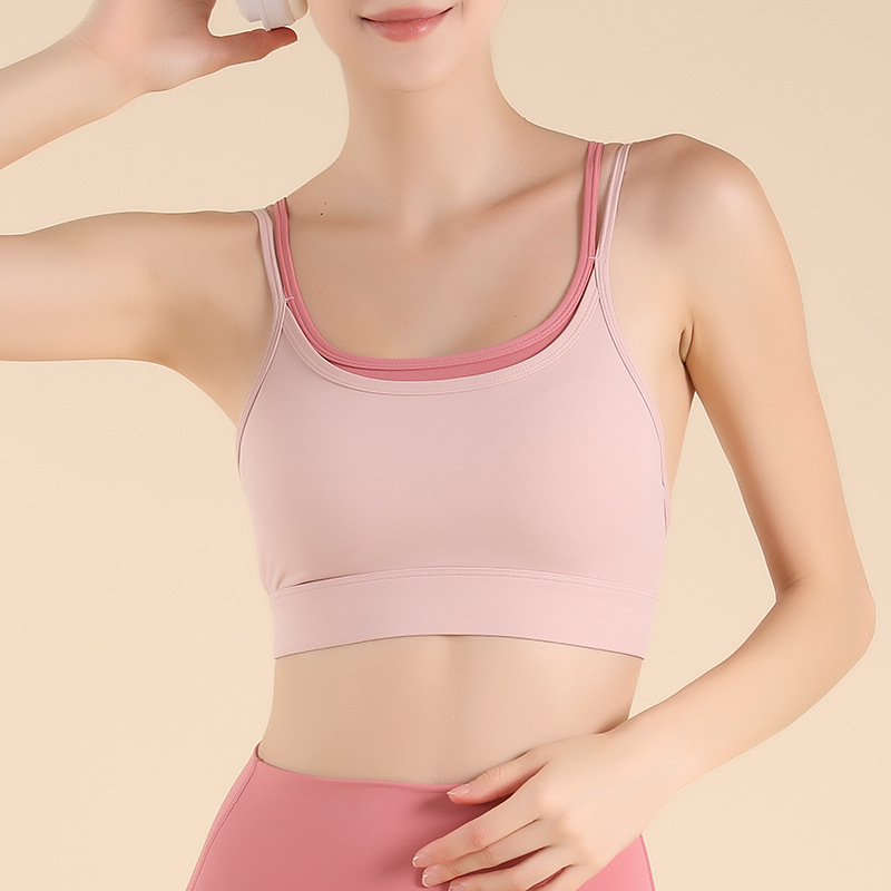 원피스 컬러 가짜 투피스 스포츠 속옷 여성의 아름다운 등 슬리밍 피트니스 요가 브라 댄스 승마 작은 슬링