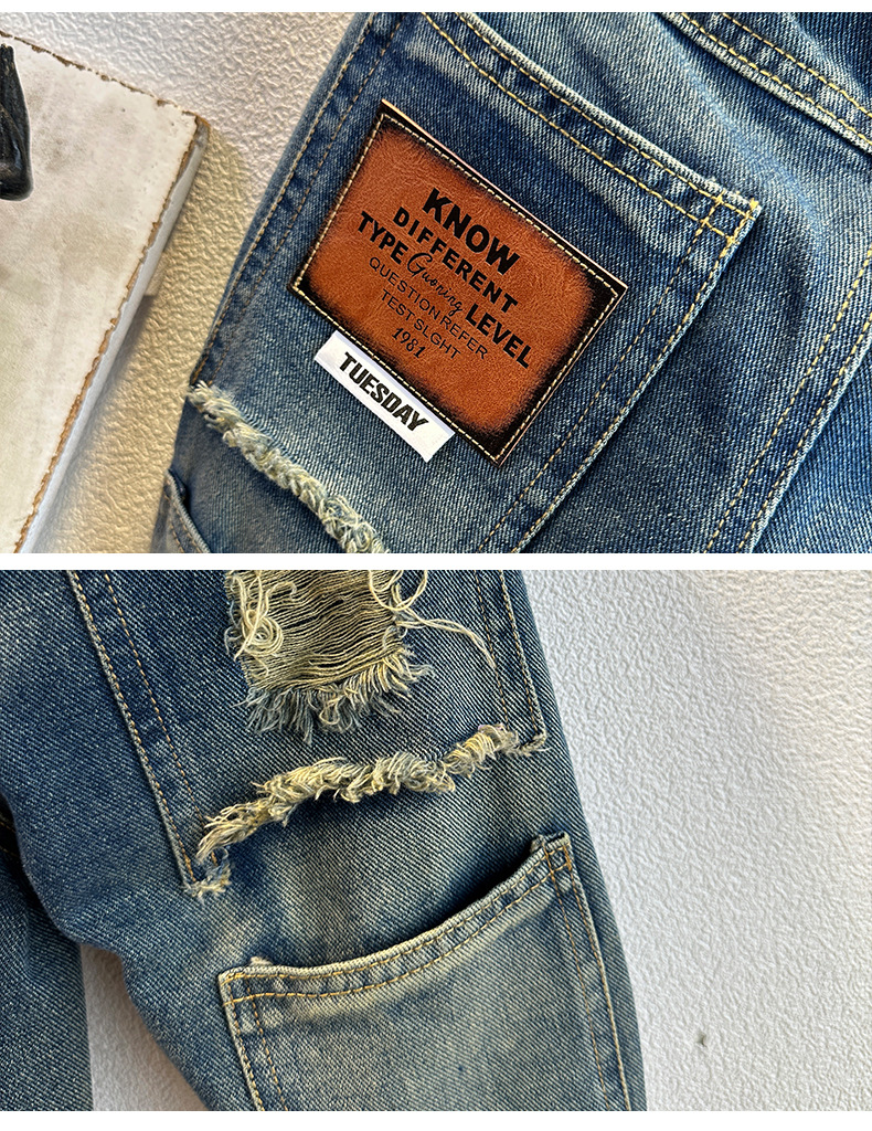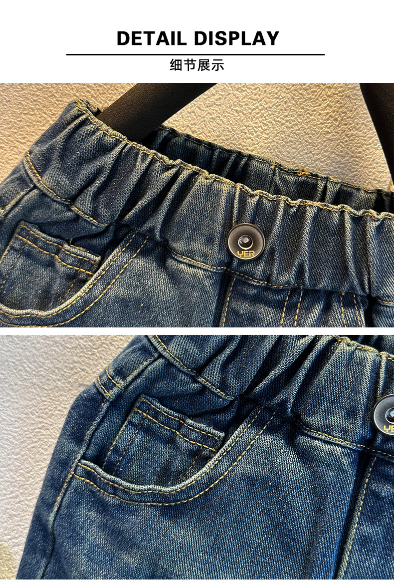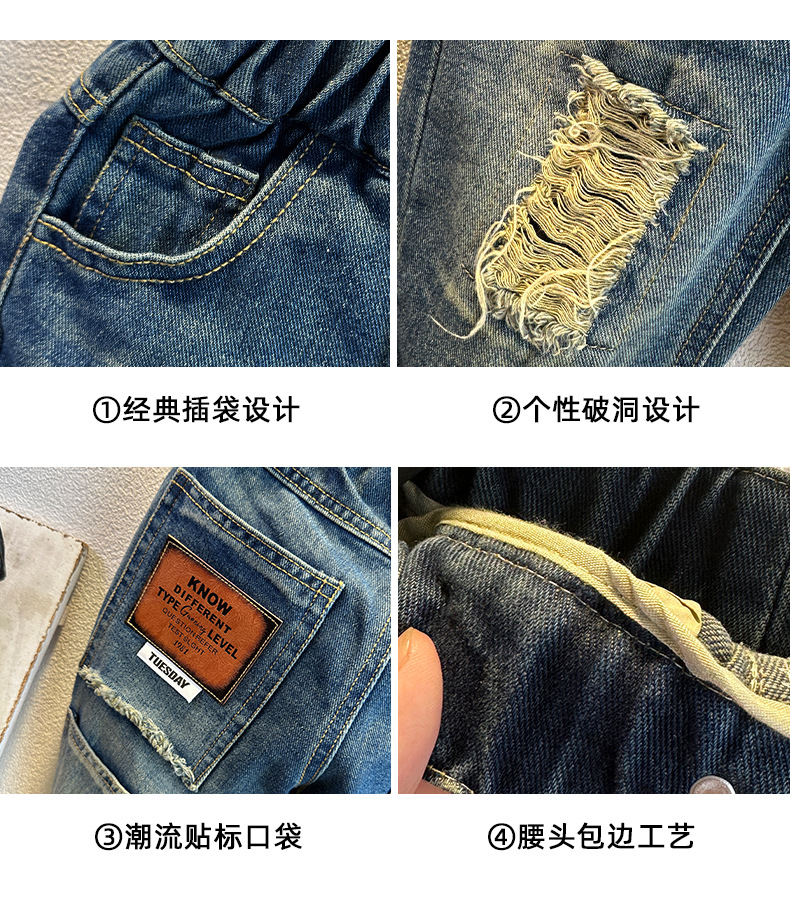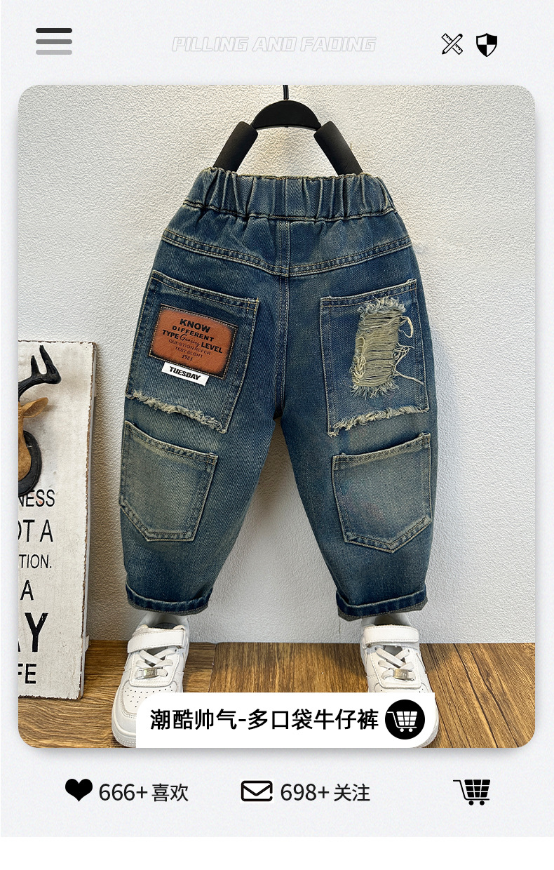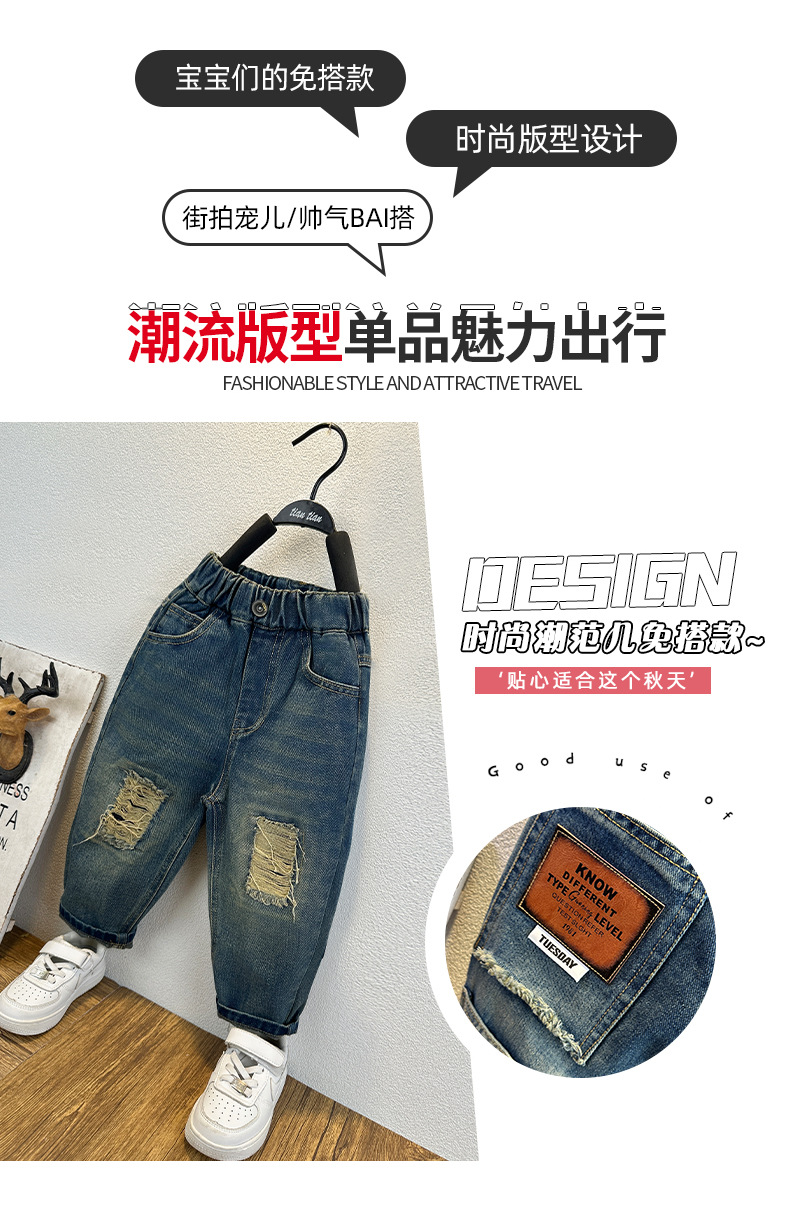 소년 튀긴 거리 청바지 가을 2024 새로운 어린이 잘 생긴 유행 유행 멋진 리핑 작은 소년의 바지 봄과 가을스토어 가기