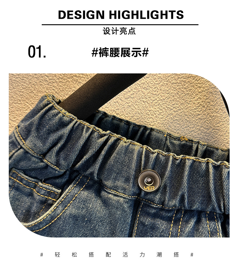 소년 튀긴 거리 청바지 가을 2024 새로운 어린이 잘 생긴 유행 유행 멋진 리핑 작은 소년의 바지 봄과 가을