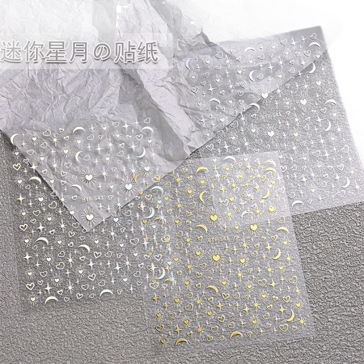 네일 아트 스티커 금박 사랑 스타 달 기하학적 패턴 3d 방수 실버 초승달 별 거름 스티커 네일 아트 장식스토어 가기