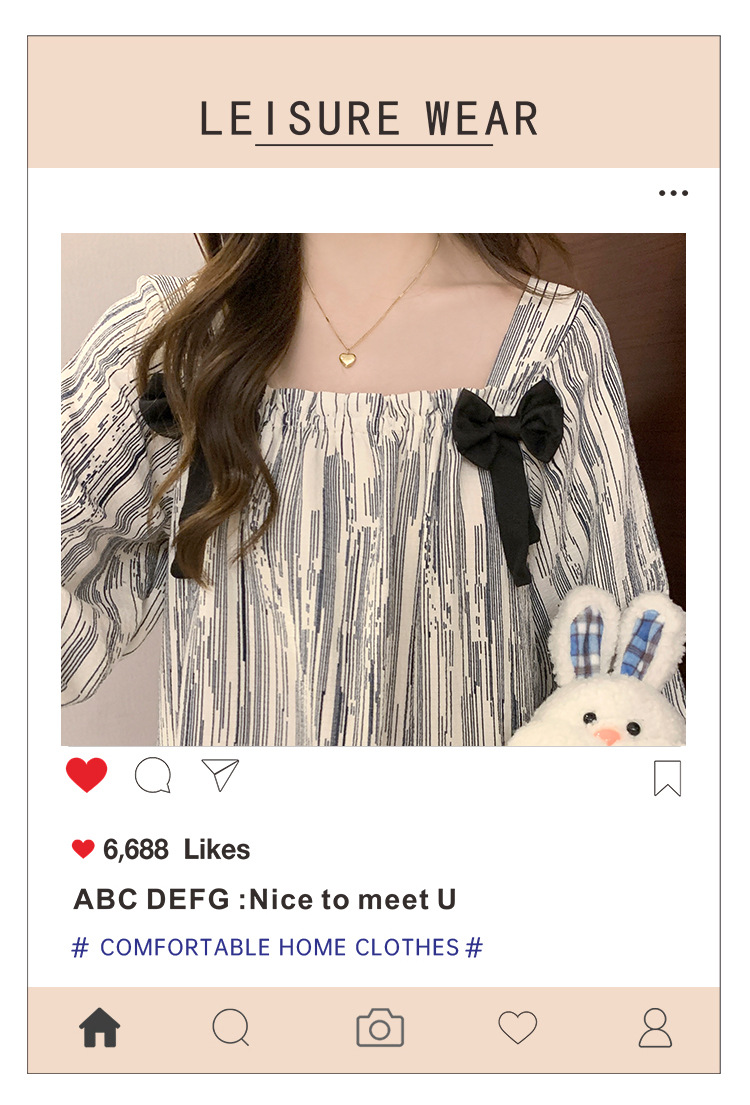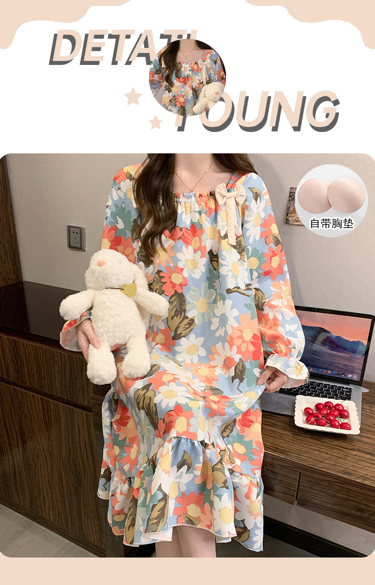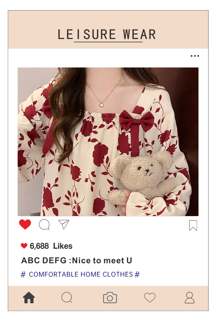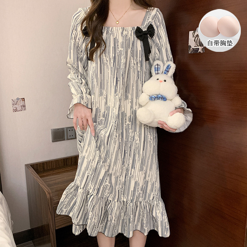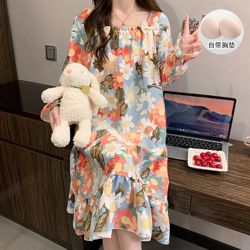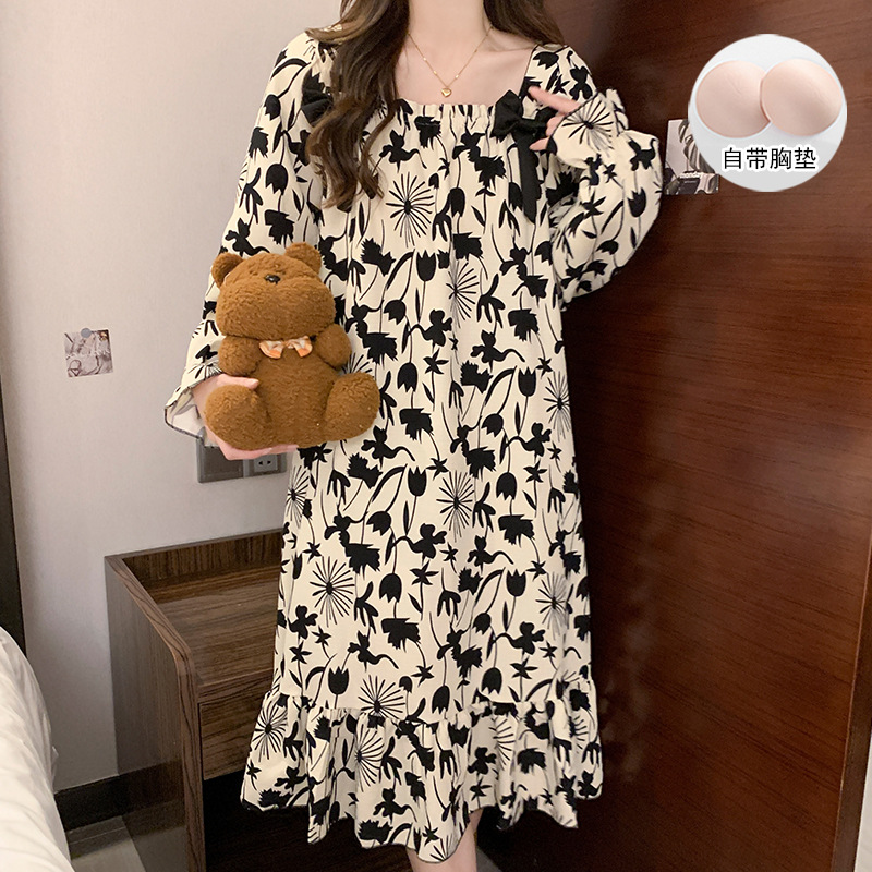 봄 및 가을 구름 짧은 소매 얇은 달콤한 파자마 귀여운 활 가을 홈 의류 가슴 패드와 여성의 잠옷스토어 가기