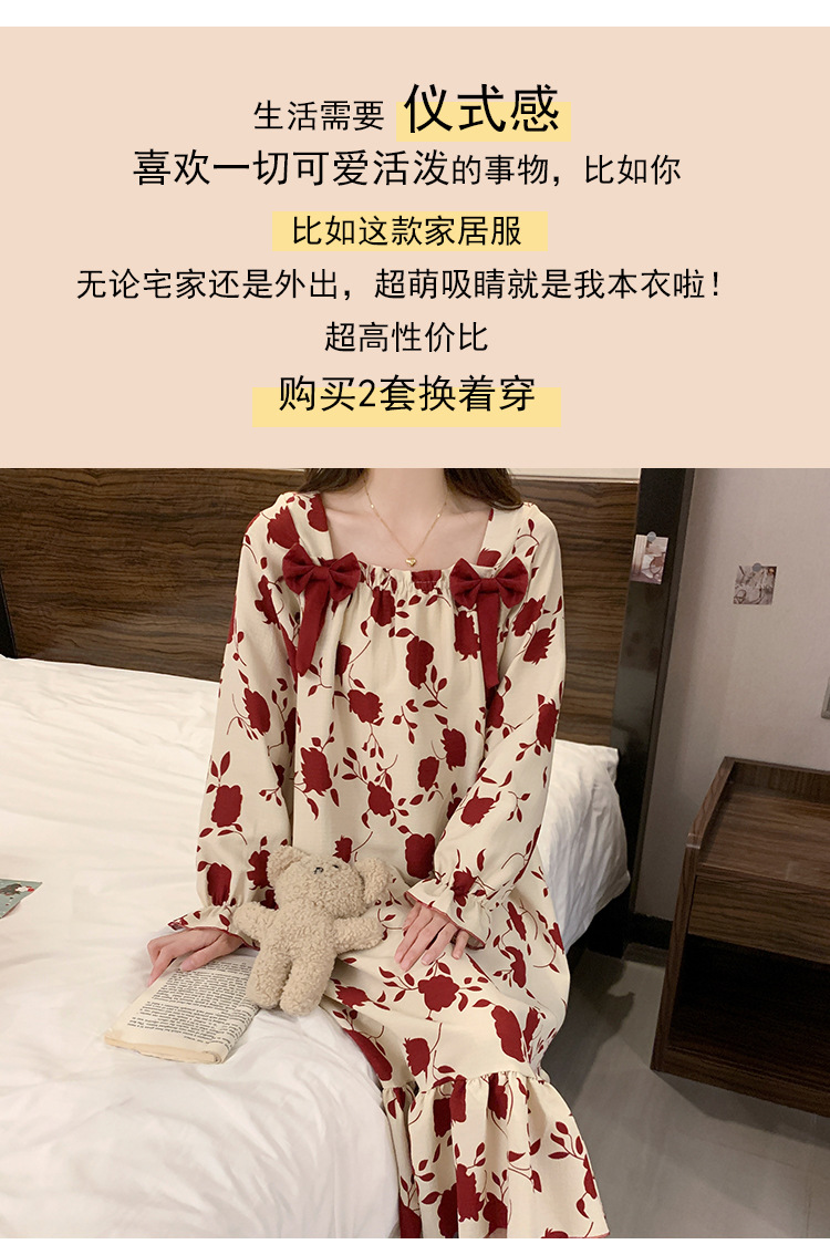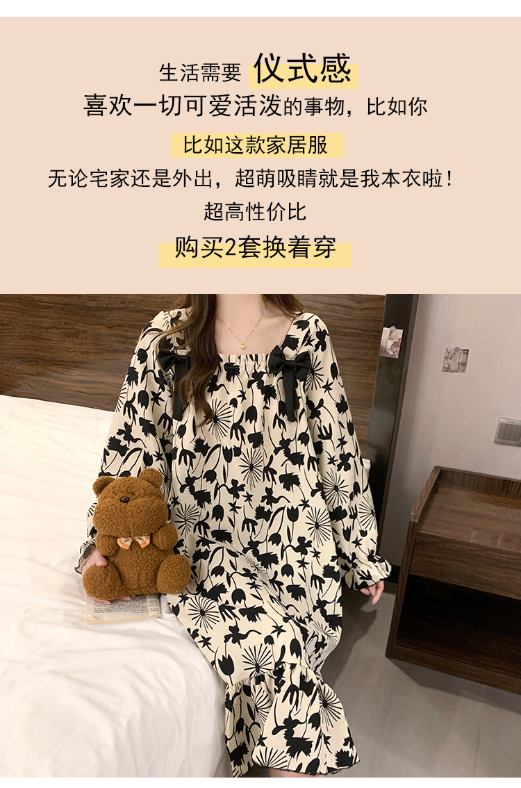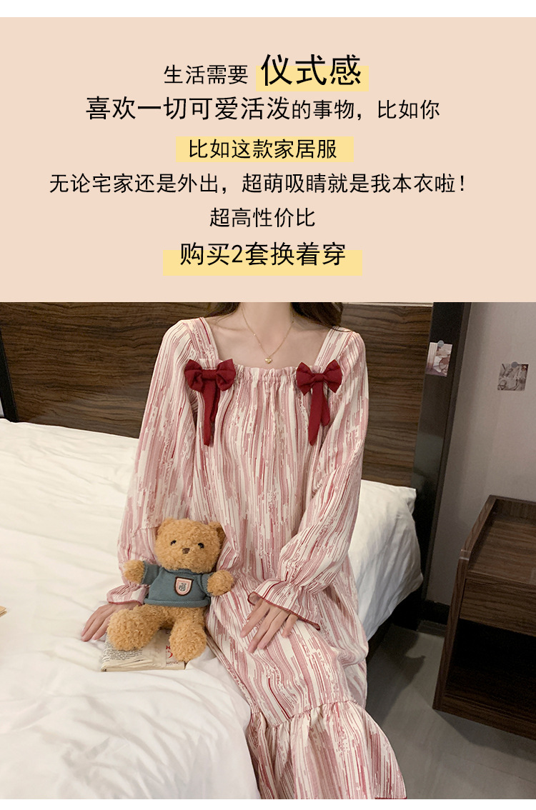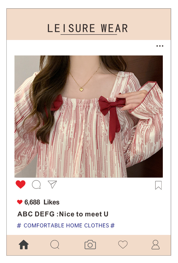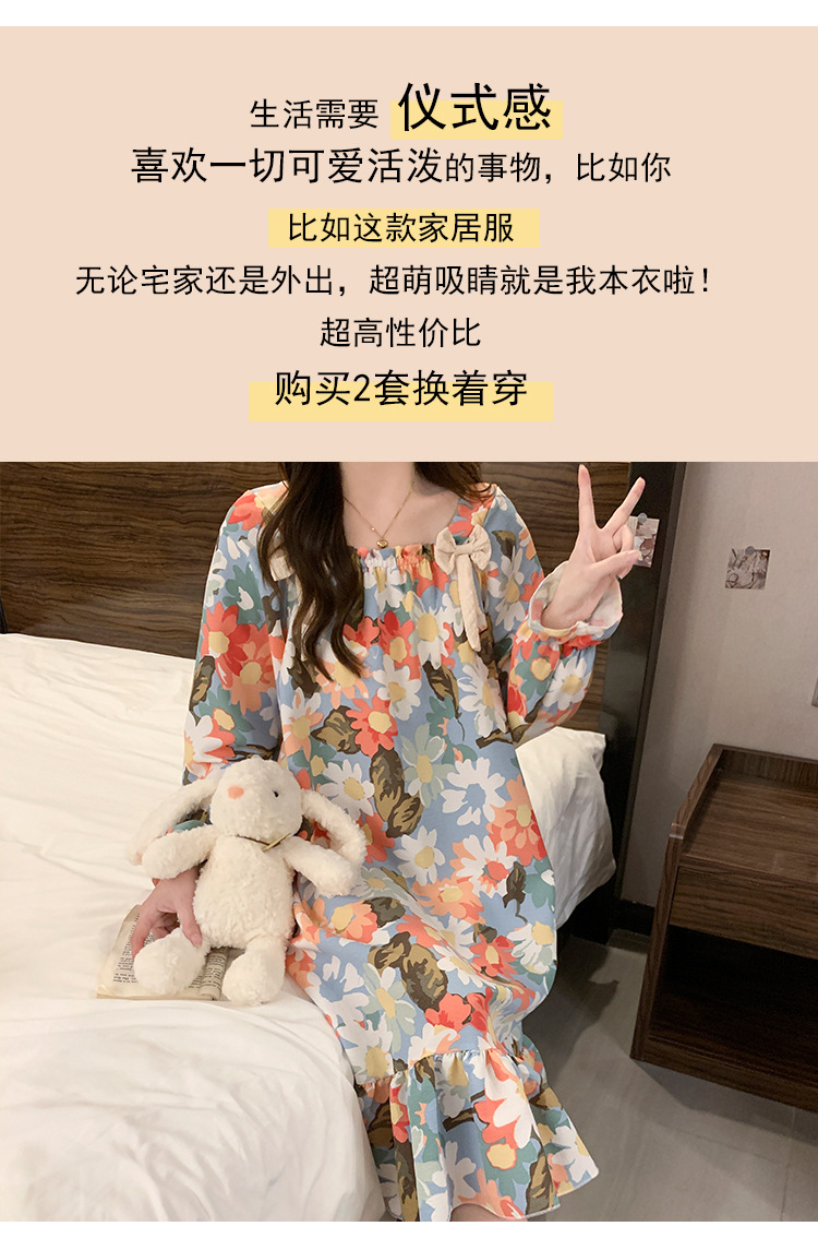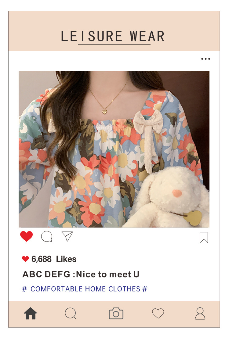 봄 및 가을 구름 짧은 소매 얇은 달콤한 파자마 귀여운 활 가을 홈 의류 가슴 패드와 여성의 잠옷스토어 가기