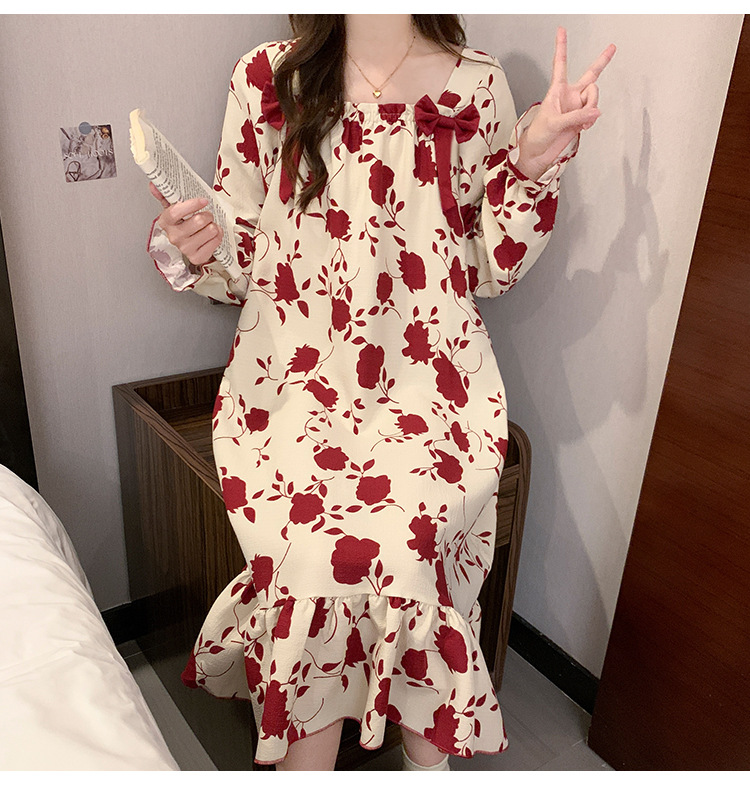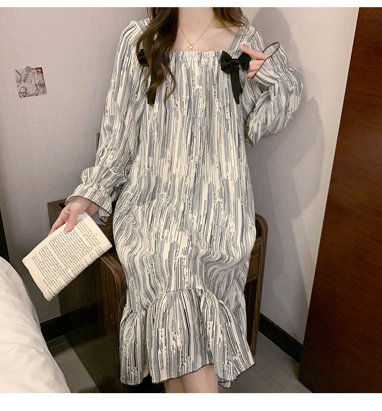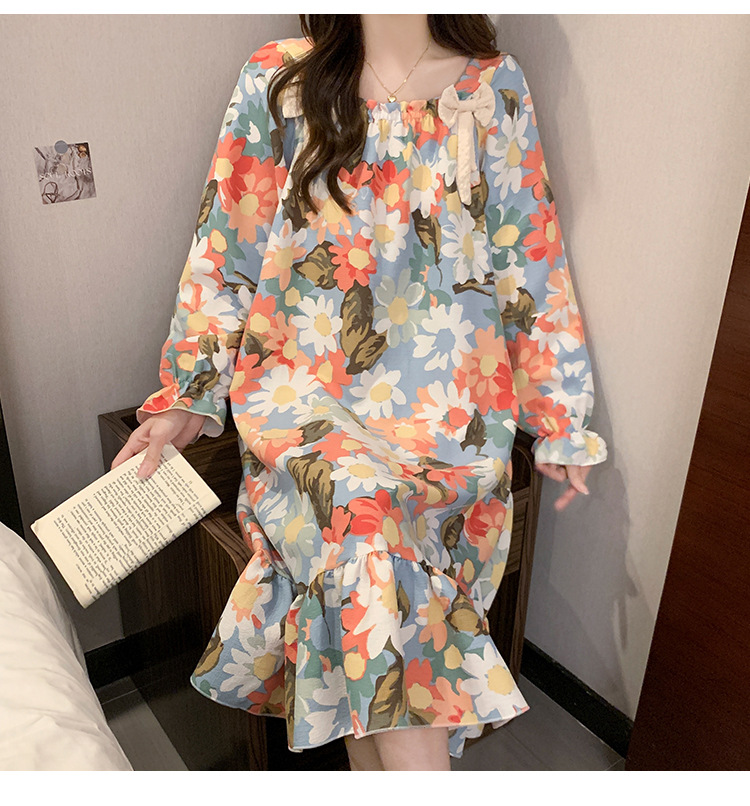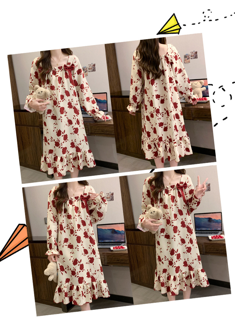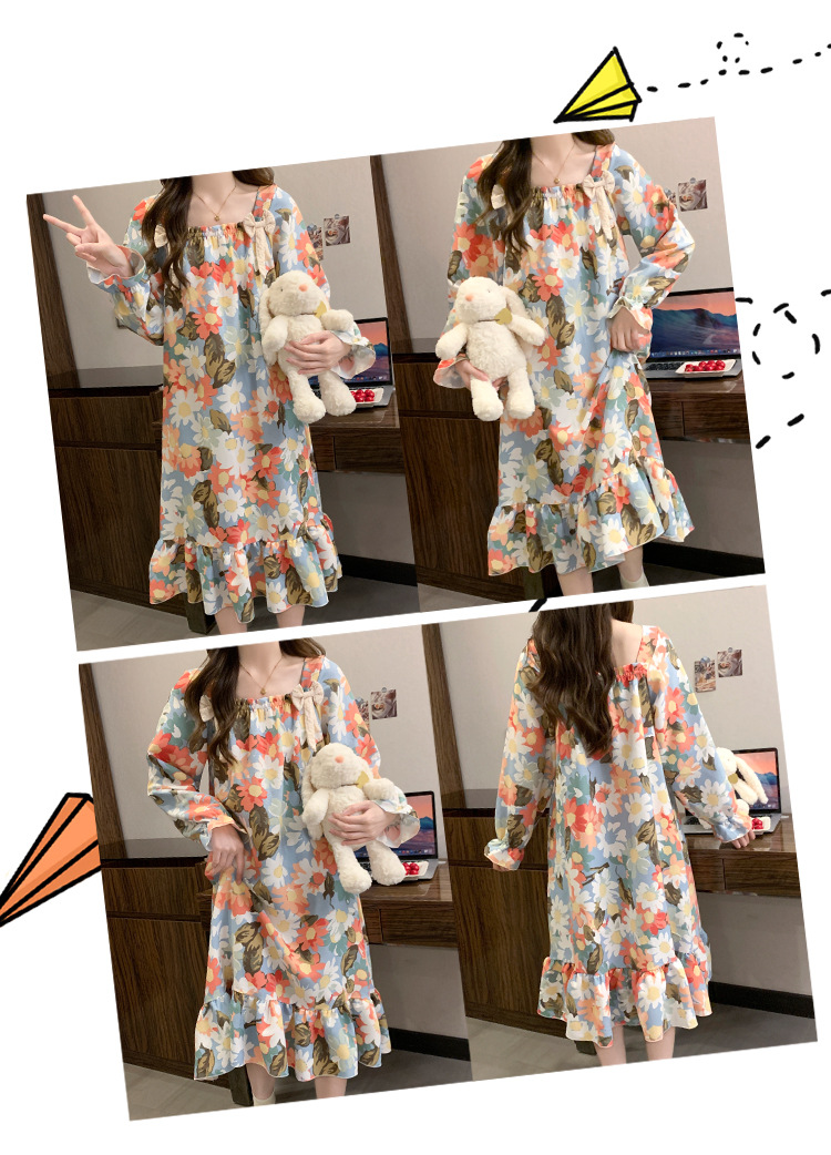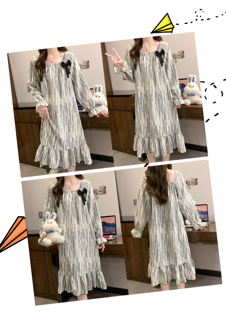 봄 및 가을 구름 짧은 소매 얇은 달콤한 파자마 귀여운 활 가을 홈 의류 가슴 패드와 여성의 잠옷스토어 가기