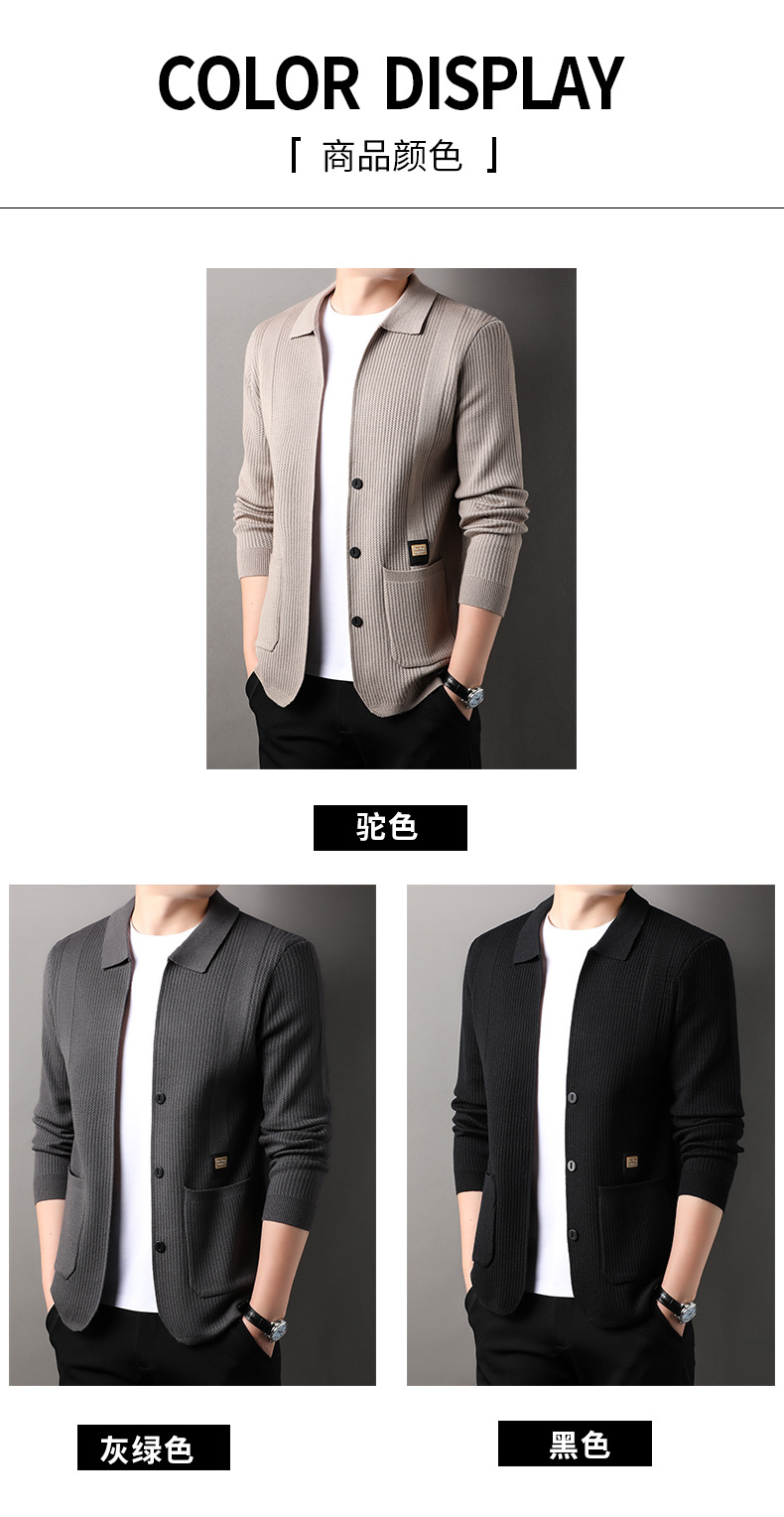 남자 봄과 가을 니트 카디건 옷깃 캐주얼 포켓 두꺼운 자카드 긴팔 한국식 올 매치 스웨터 재킷스토어 가기