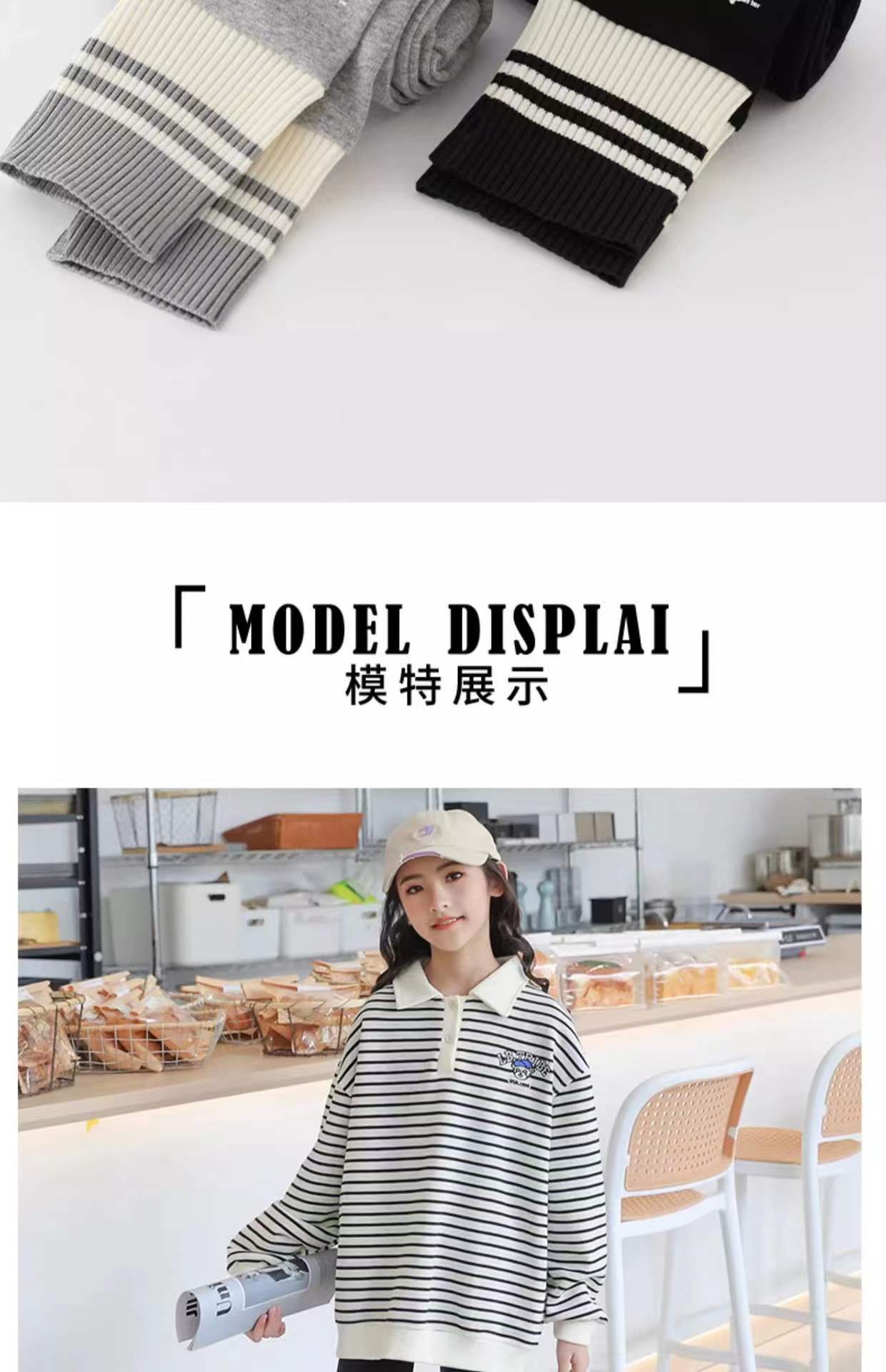 • 다크 그레이(벨벳 스타일) 심플 스트라이프 레깅스