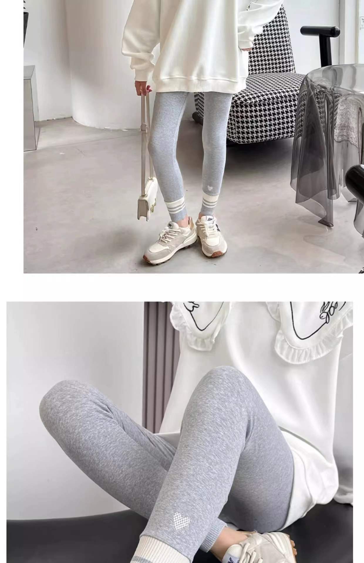 • 라이트 그레이(벨벳) 심플 스트라이프 레깅스