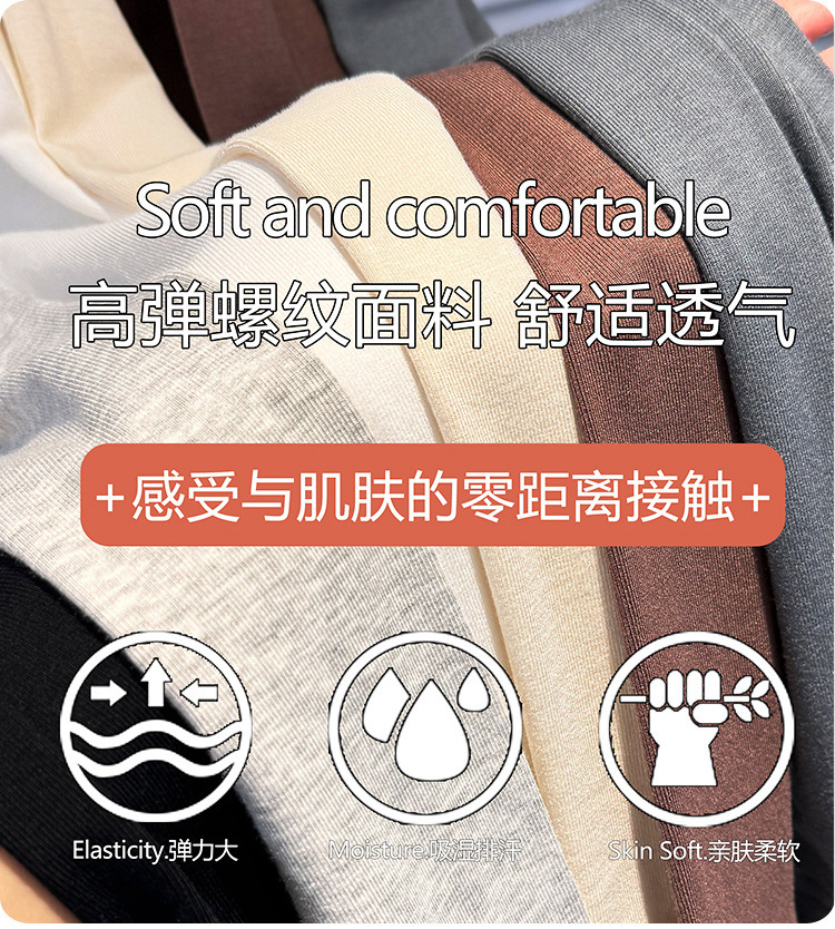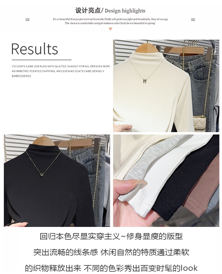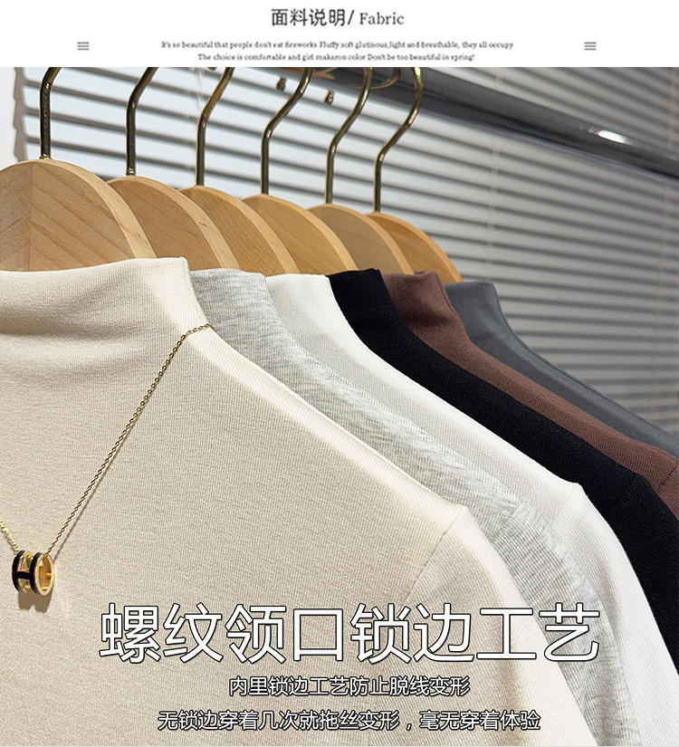 2024新款女士纯色时尚百搭显瘦打底衫T恤春秋中领上衣半高领秋冬