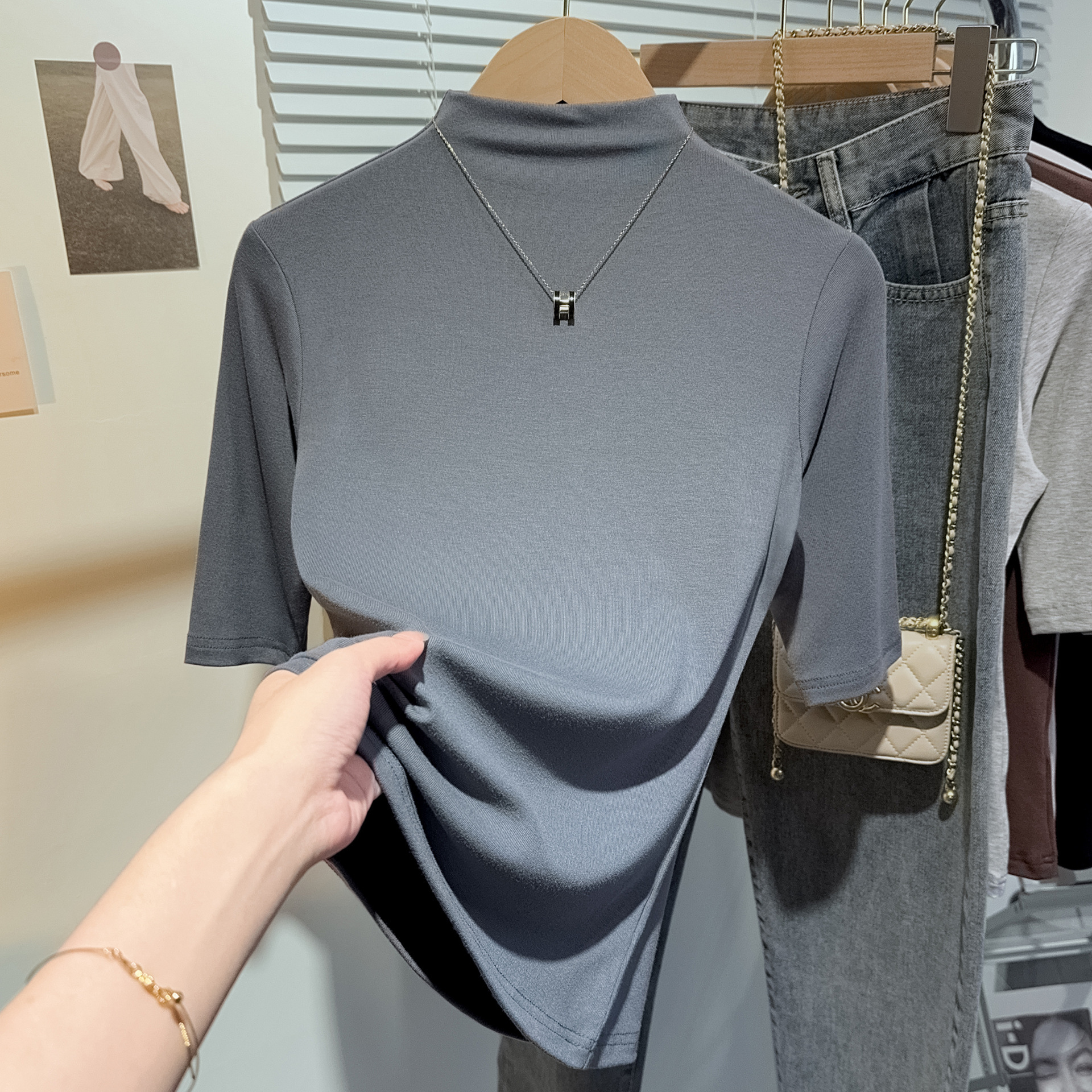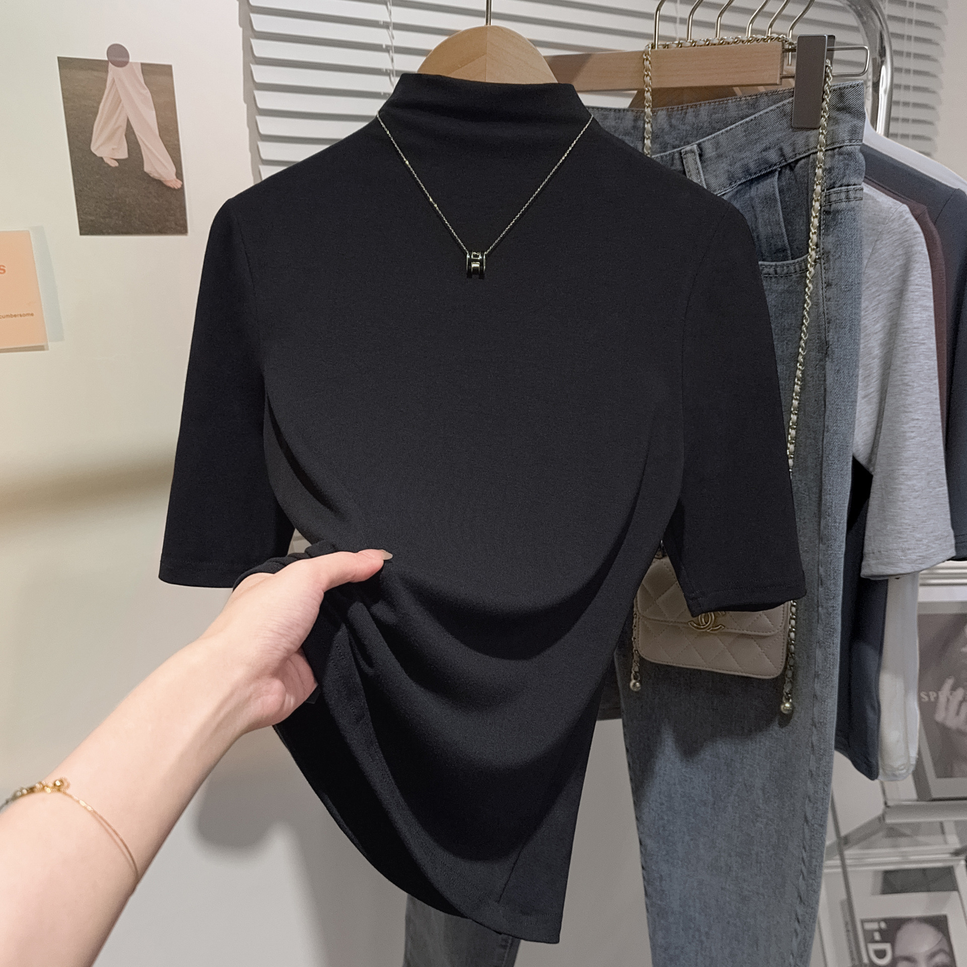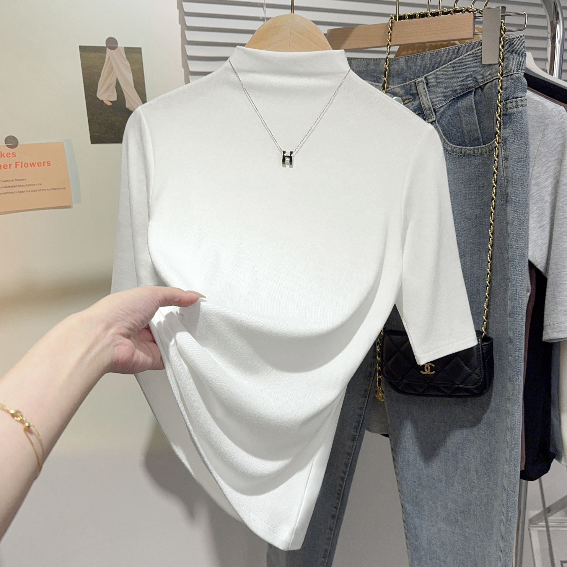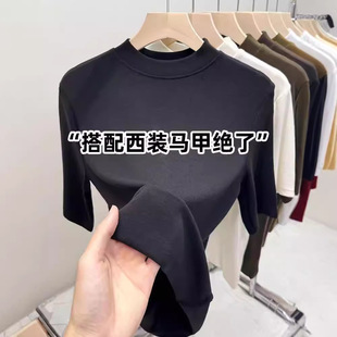2024新款半高领纯色五分袖内搭打底衫女春季百搭显瘦气质上衣T恤