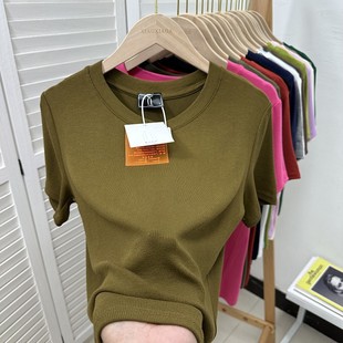2024夏弹力针织纯色圆领百搭修身显瘦短袖T恤女大码洋气时尚上衣