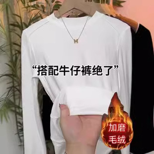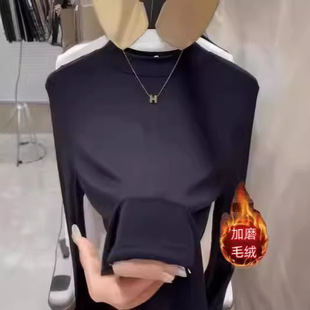 2024秋冬新款加磨毛内搭小立领纯色简约百搭显瘦半高领打底t恤女
