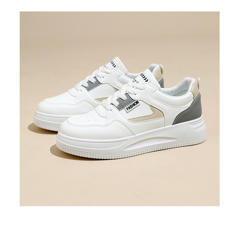 새로운 여성 신발 올매치 한국식 캐주얼 신발 보드 신발 라운드 발가락 흰색 신발 2024 여성용 두꺼운 밑창 운동화 보드 신발