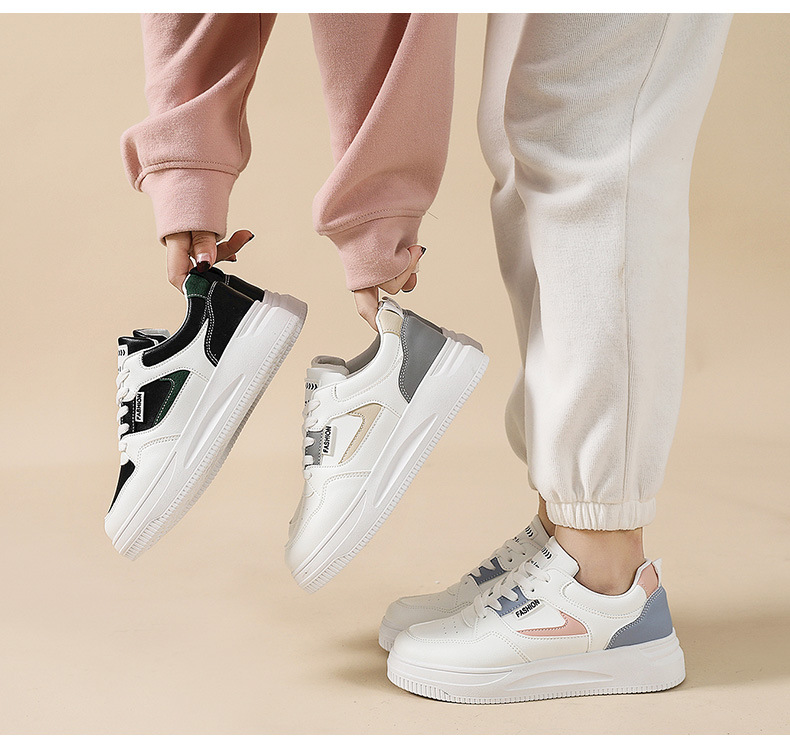 새로운 여성 신발 올매치 한국식 캐주얼 신발 보드 신발 라운드 발가락 흰색 신발 2024 여성용 두꺼운 밑창 운동화 보드 신발스토어 가기