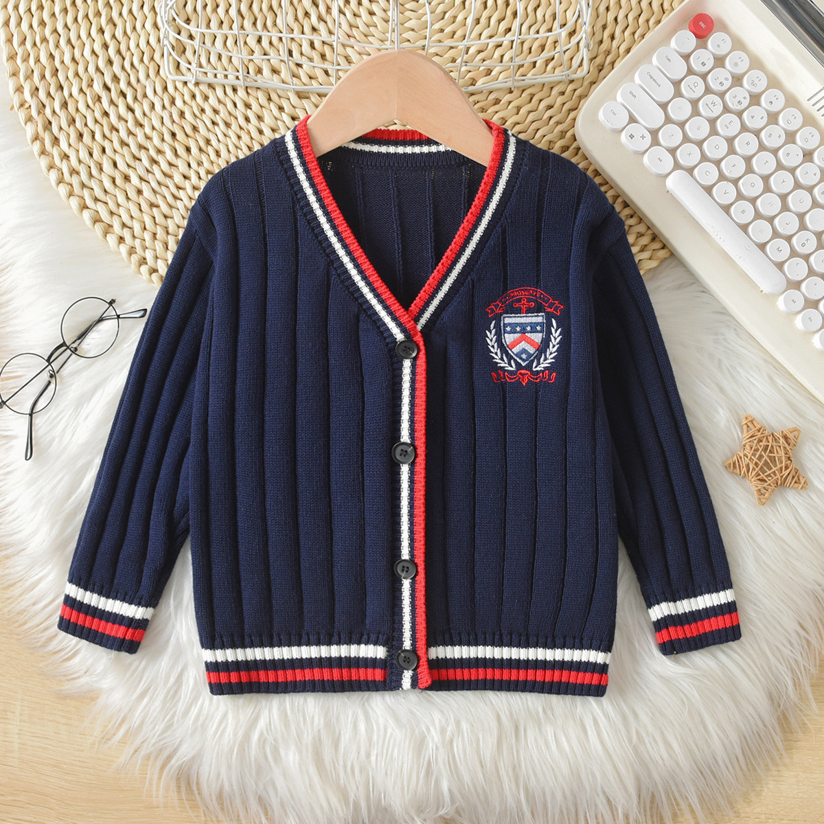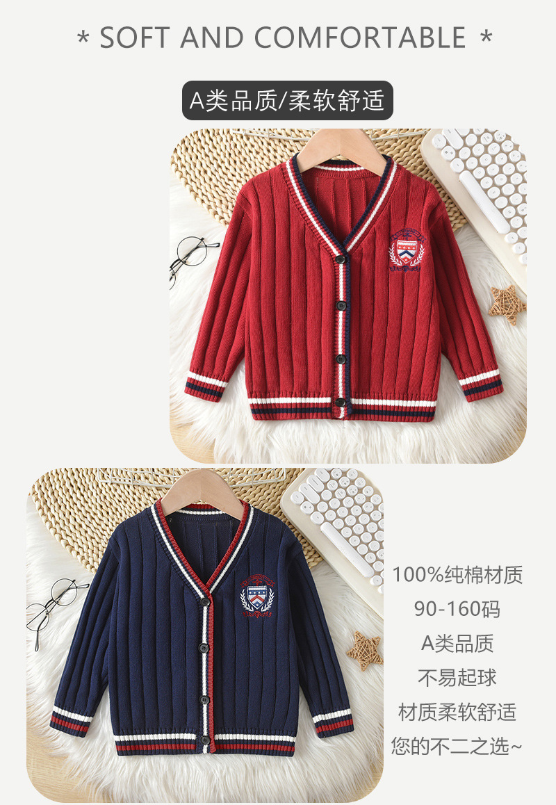 남학생과 여학교 유니폼 가을과 겨울 어린이 대학 스타일 니트 코트 큰 어린이 면 카디건 줄무늬 스웨터