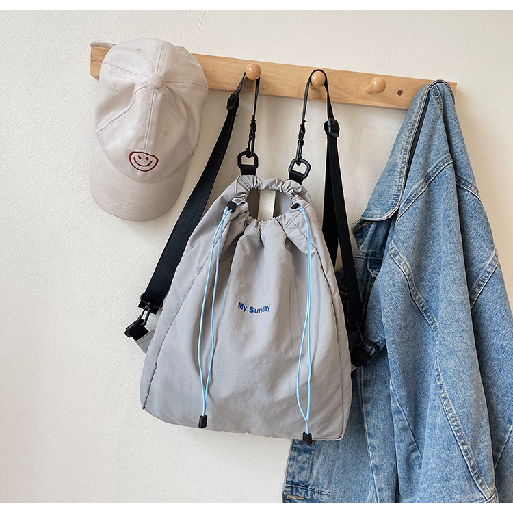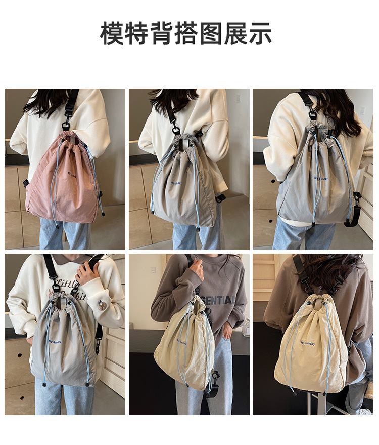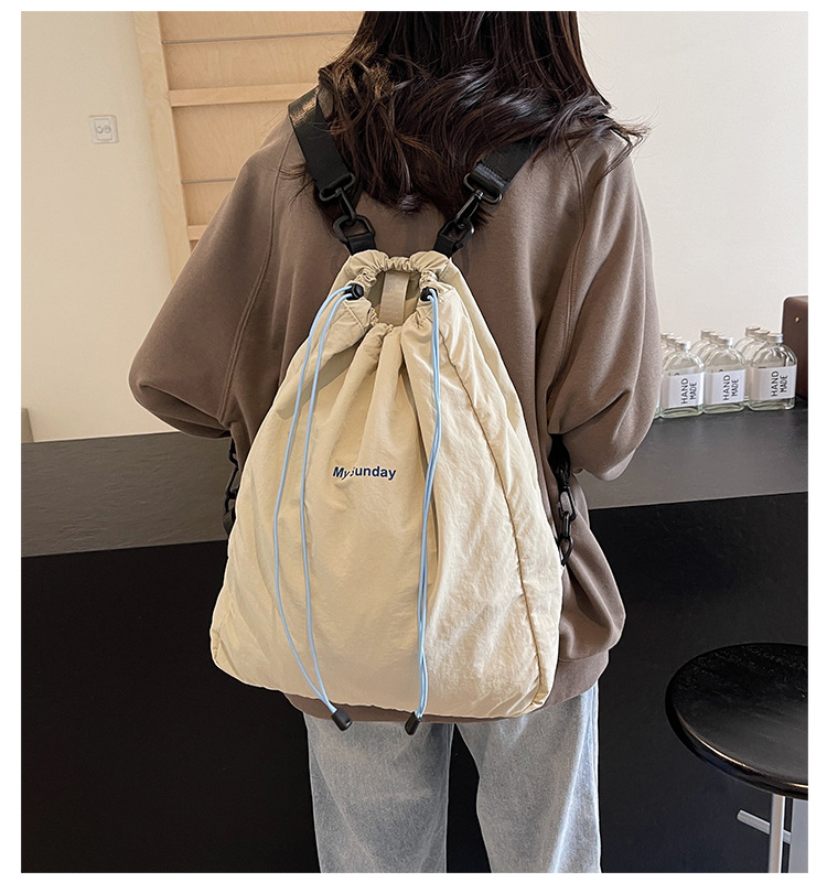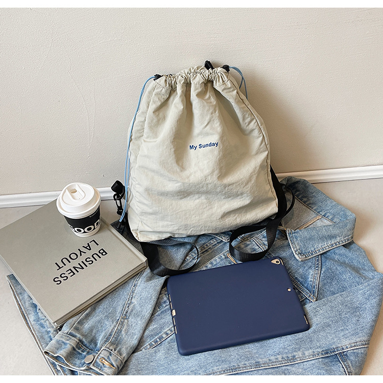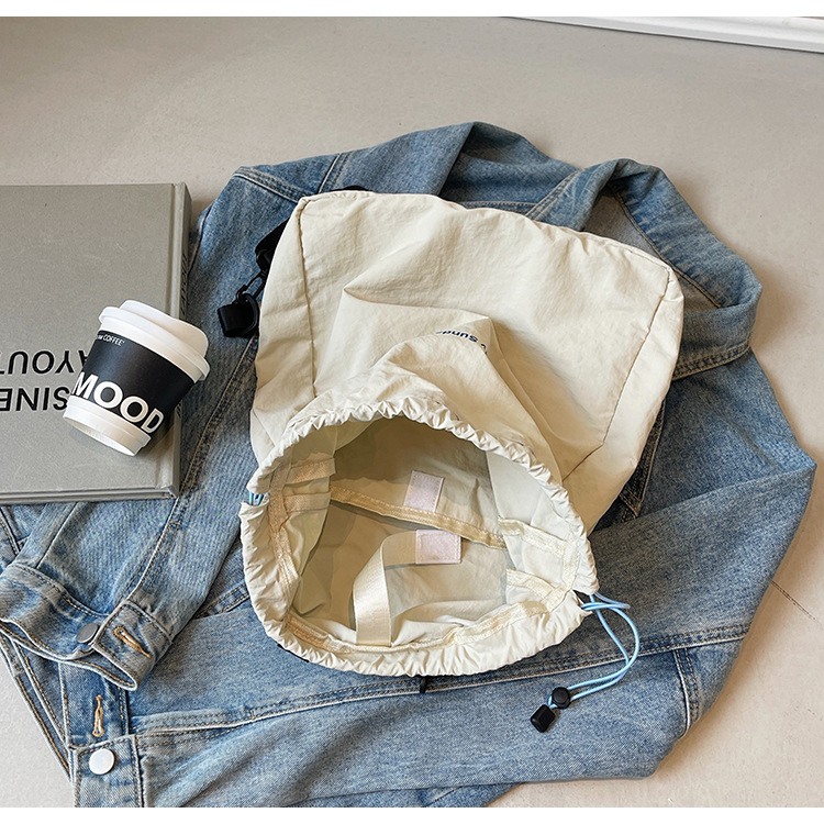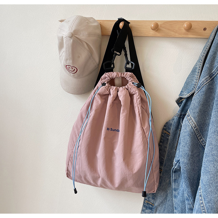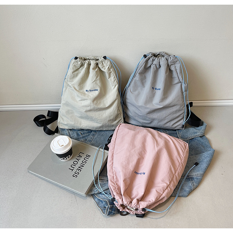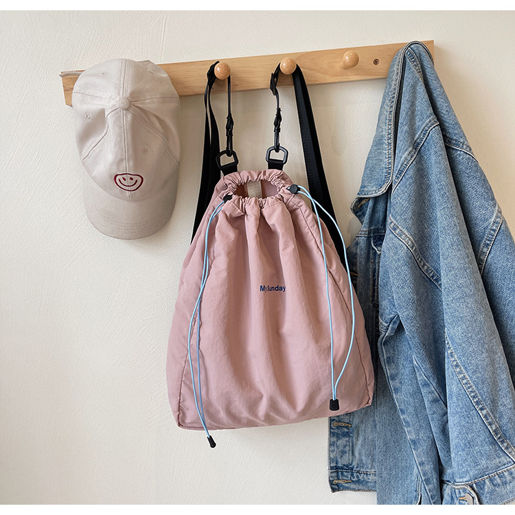 2024 새로운 도착 드로우 스트링 나일론 배낭 틈새 디자인 여성 가방 캐주얼 배낭 거리 대용량스토어 가기