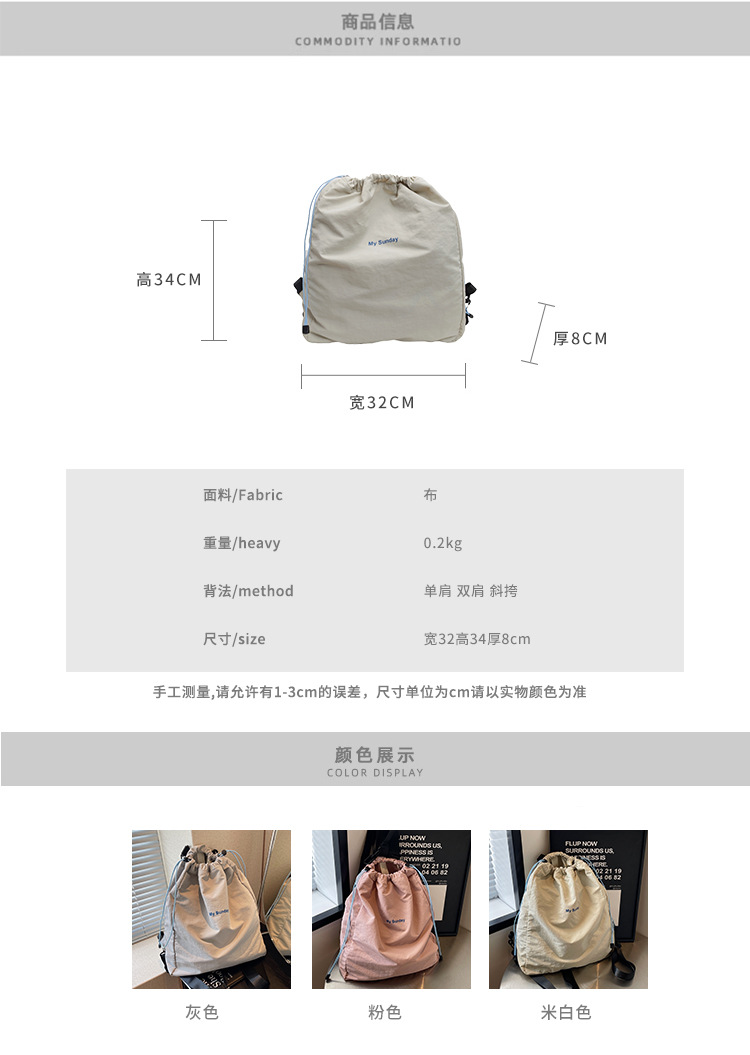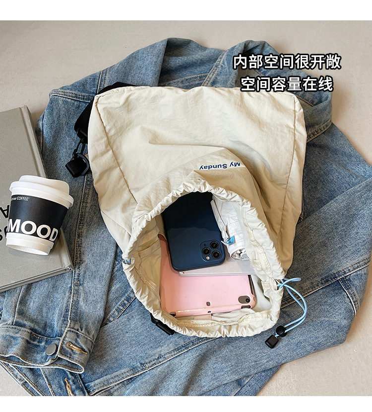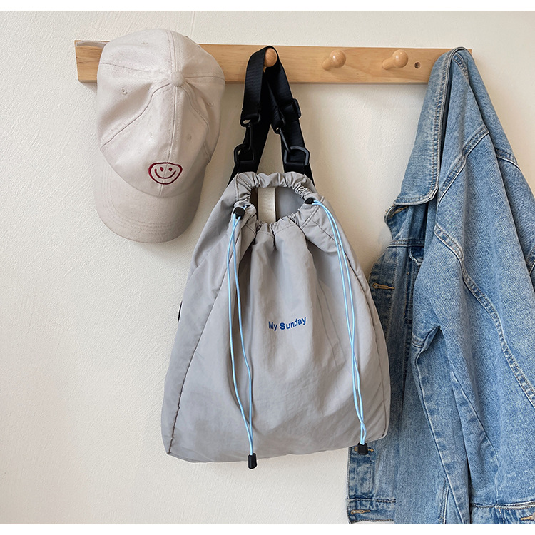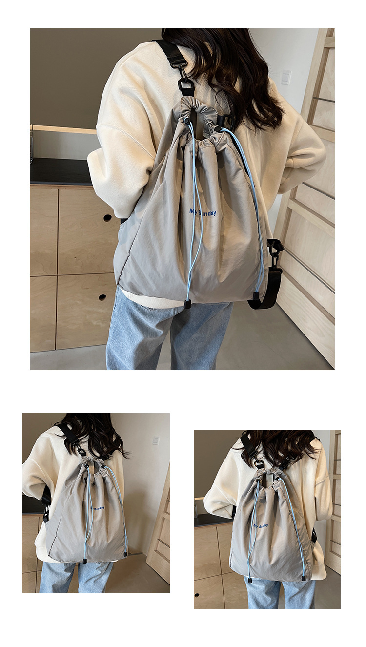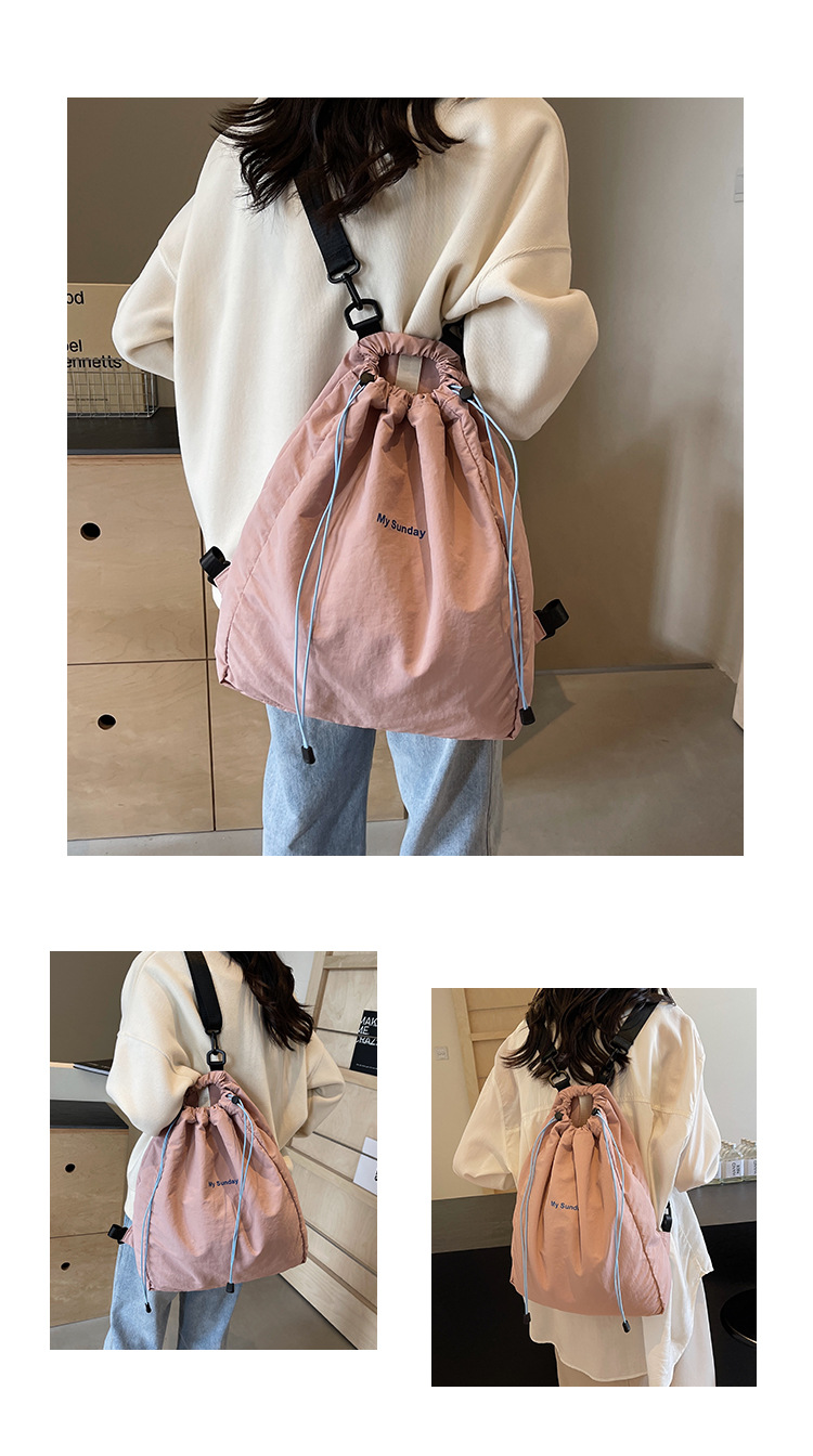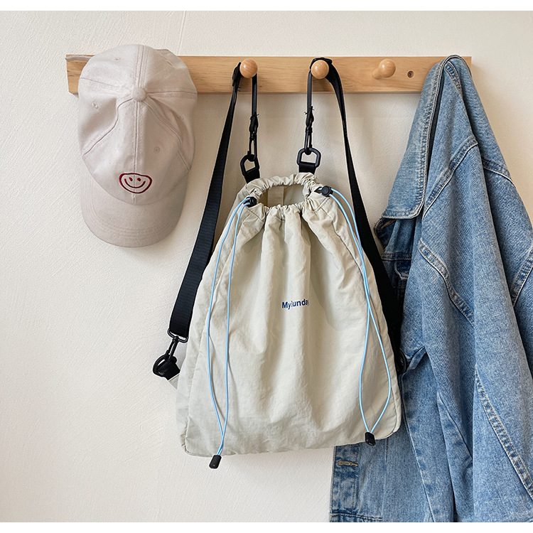 2024 새로운 도착 드로우 스트링 나일론 배낭 틈새 디자인 여성 가방 캐주얼 배낭 거리 대용량스토어 가기