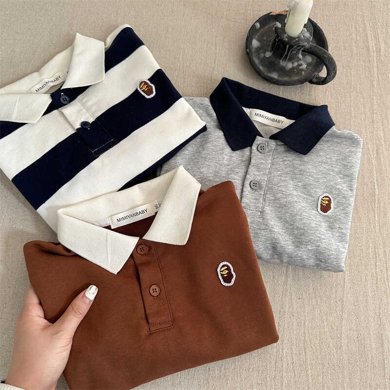 Lin Lin Ma 폴로 셔츠 24 가을 소년 소녀 일본 패션 머리 티셔츠 아기 줄무늬 옷깃 긴소매 기본 셔츠