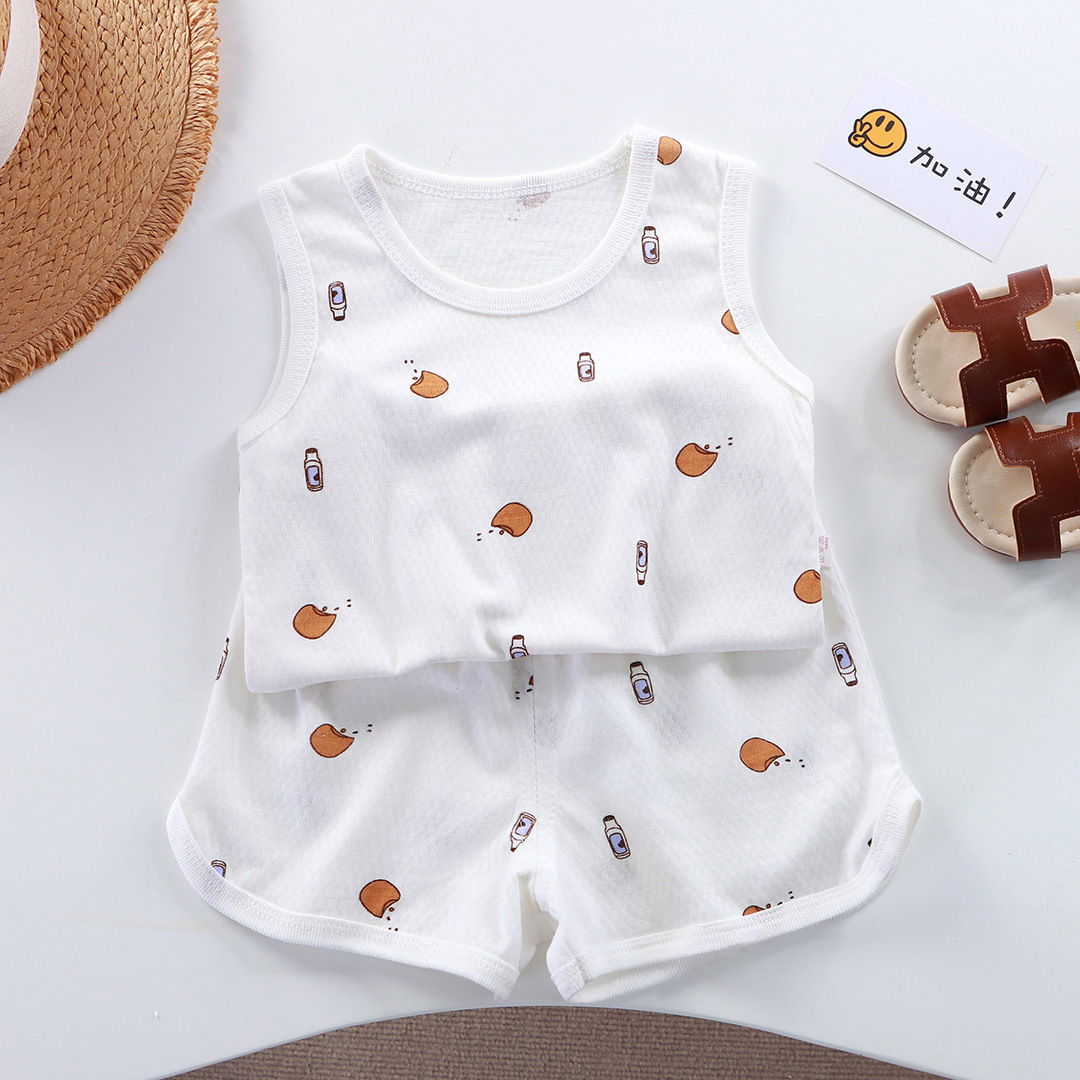 어린이 조끼 세트 면화 민소매 소녀 여름 한국 아동복 새 여름 소년 투피스 도매