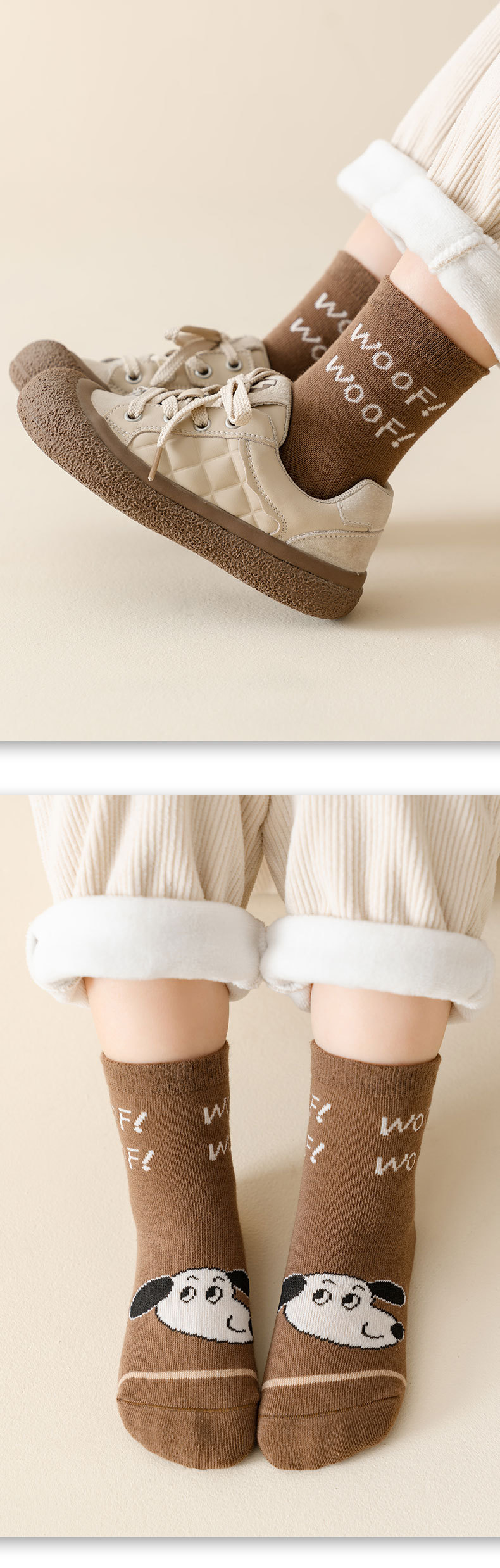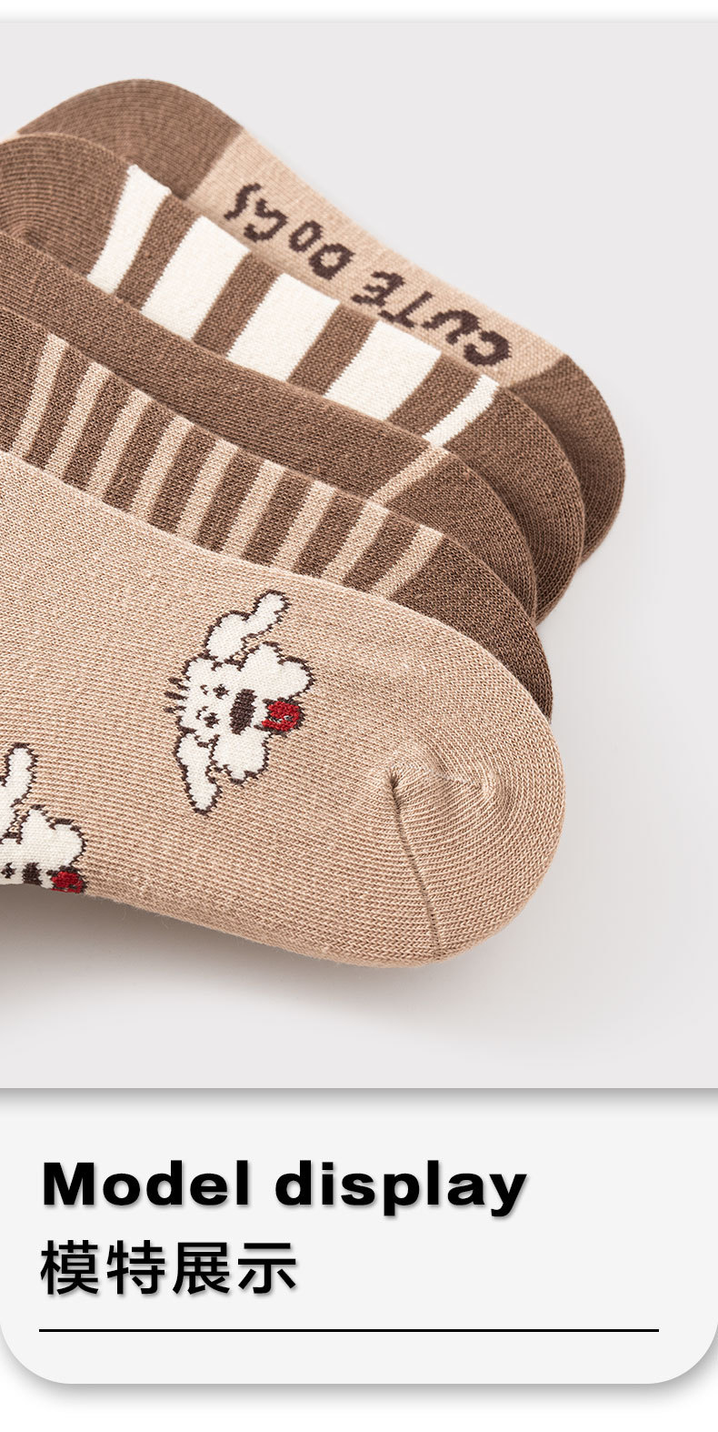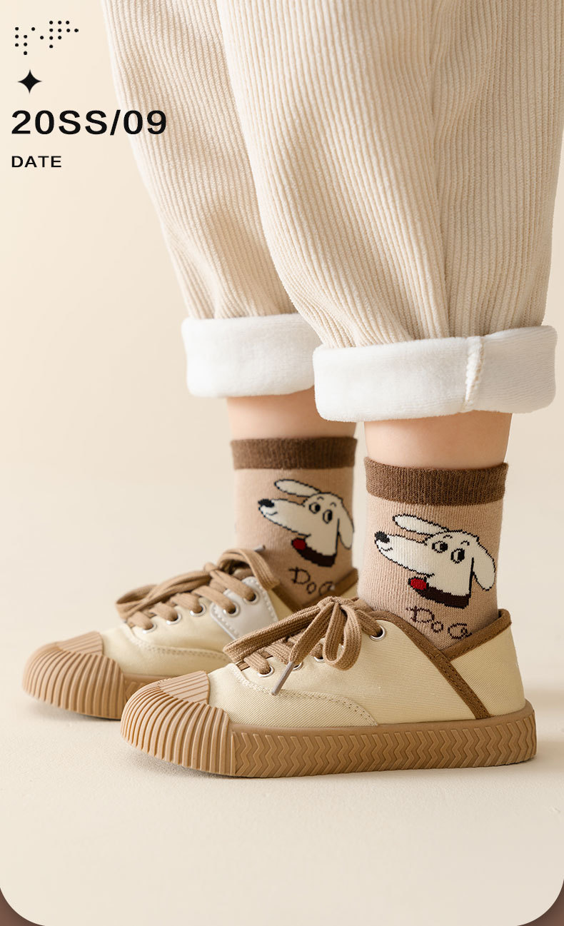 가을과 겨울 새로운 어린이 양말 줄무늬 강아지 소년과 소녀 가을 폴리 에스테르 코튼 다크 브라운 학생 양말 클래스 만화 중간 양말