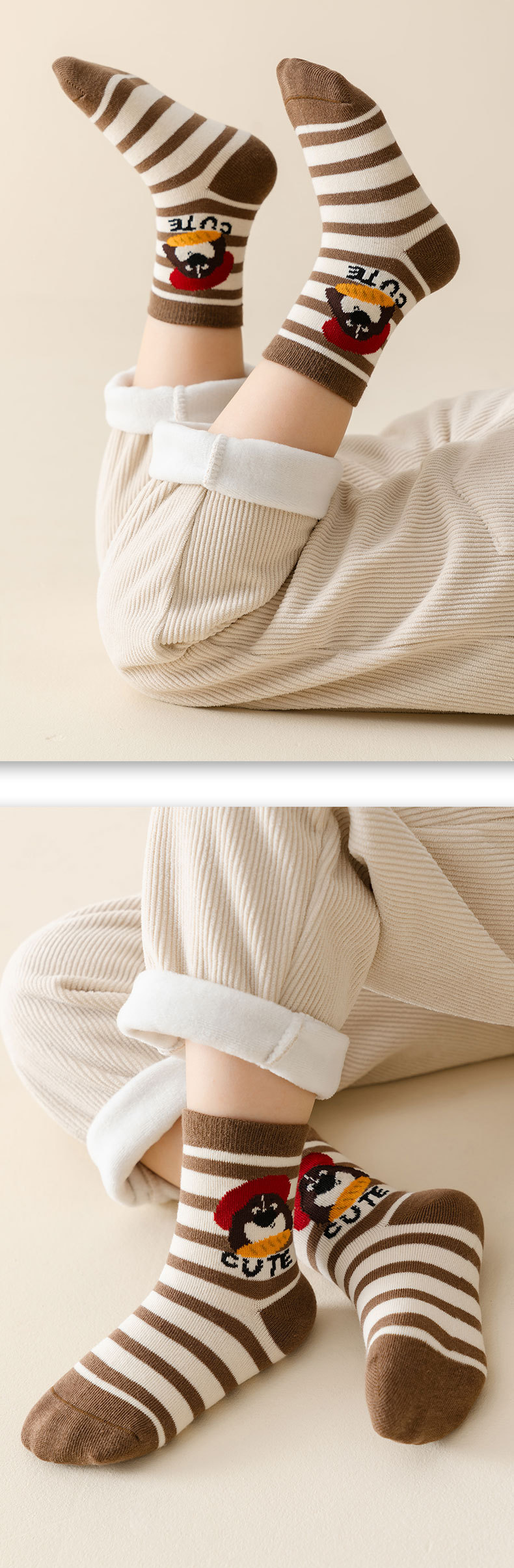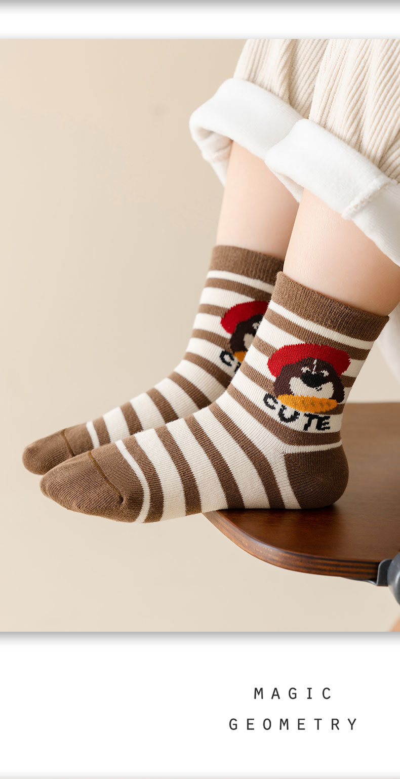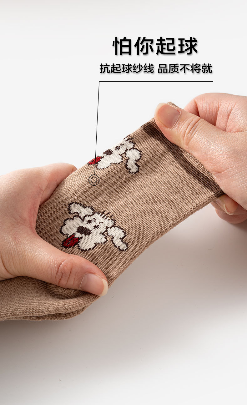 가을과 겨울 새로운 어린이 양말 줄무늬 강아지 소년과 소녀 가을 폴리 에스테르 코튼 다크 브라운 학생 양말 클래스 만화 중간 양말스토어 가기