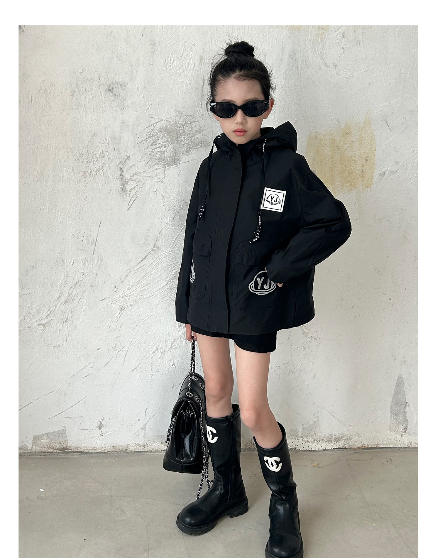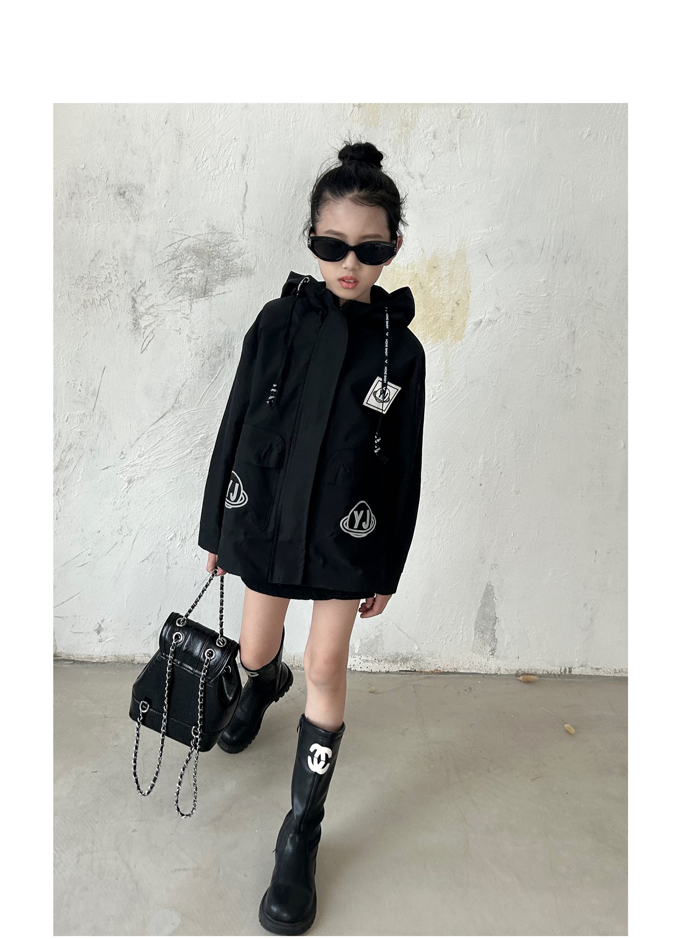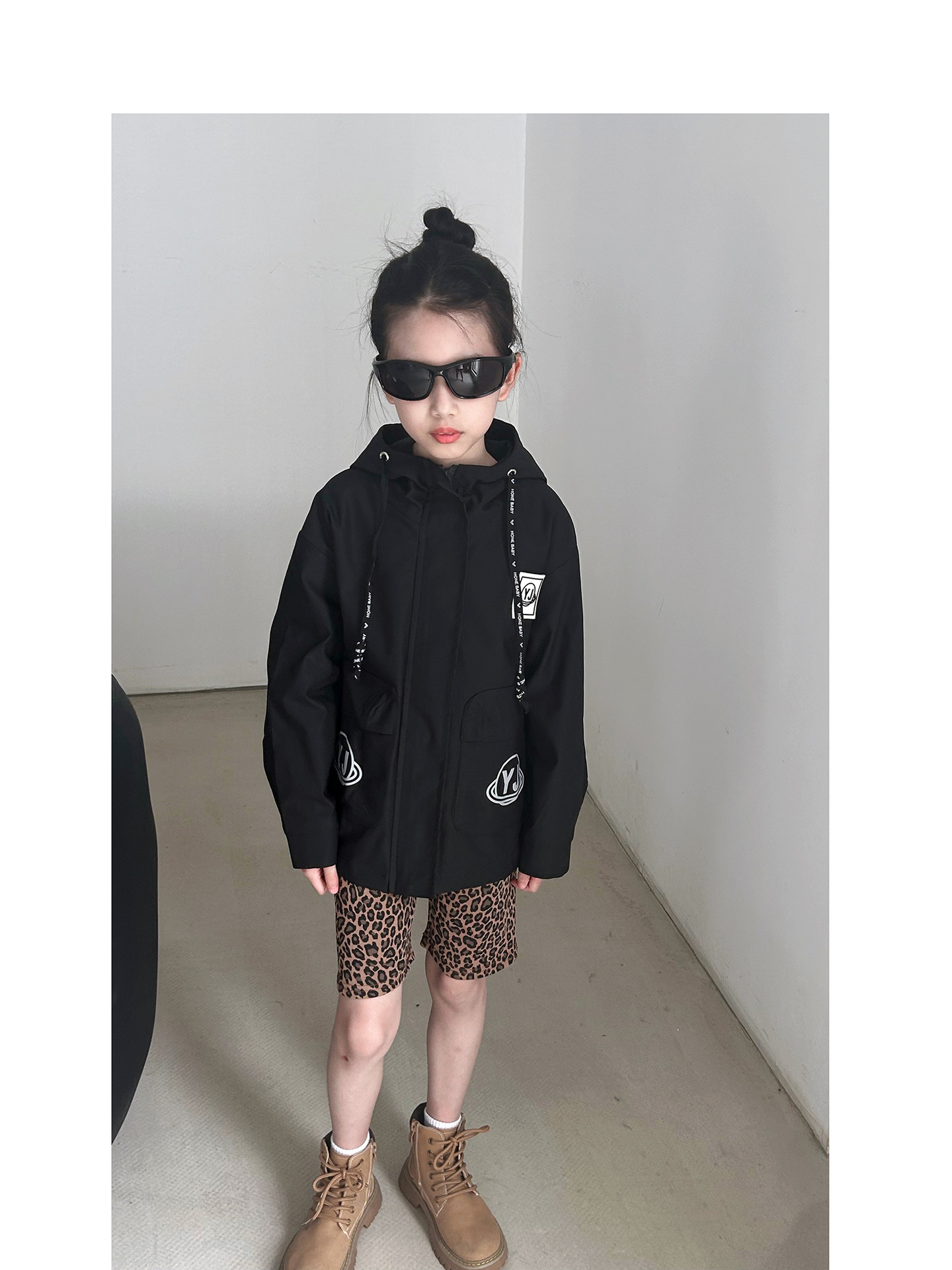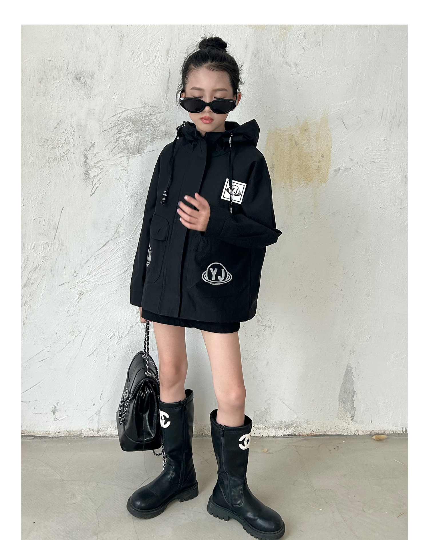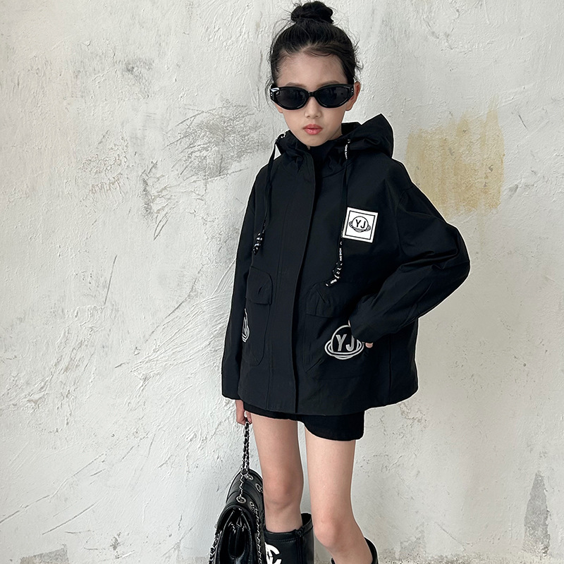 여자 블랙 자켓 어린이 후드 자켓 여자 패션 자켓 프린트 탑 캐주얼 윈드 브레이커