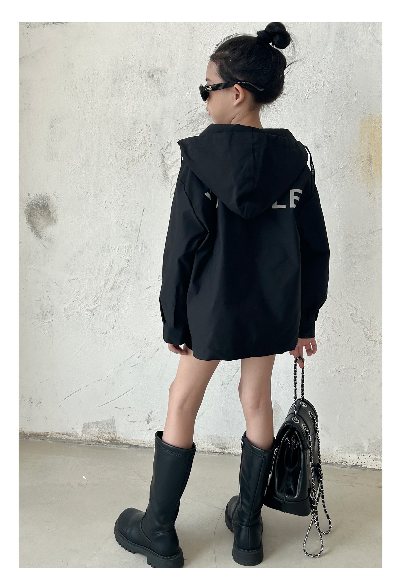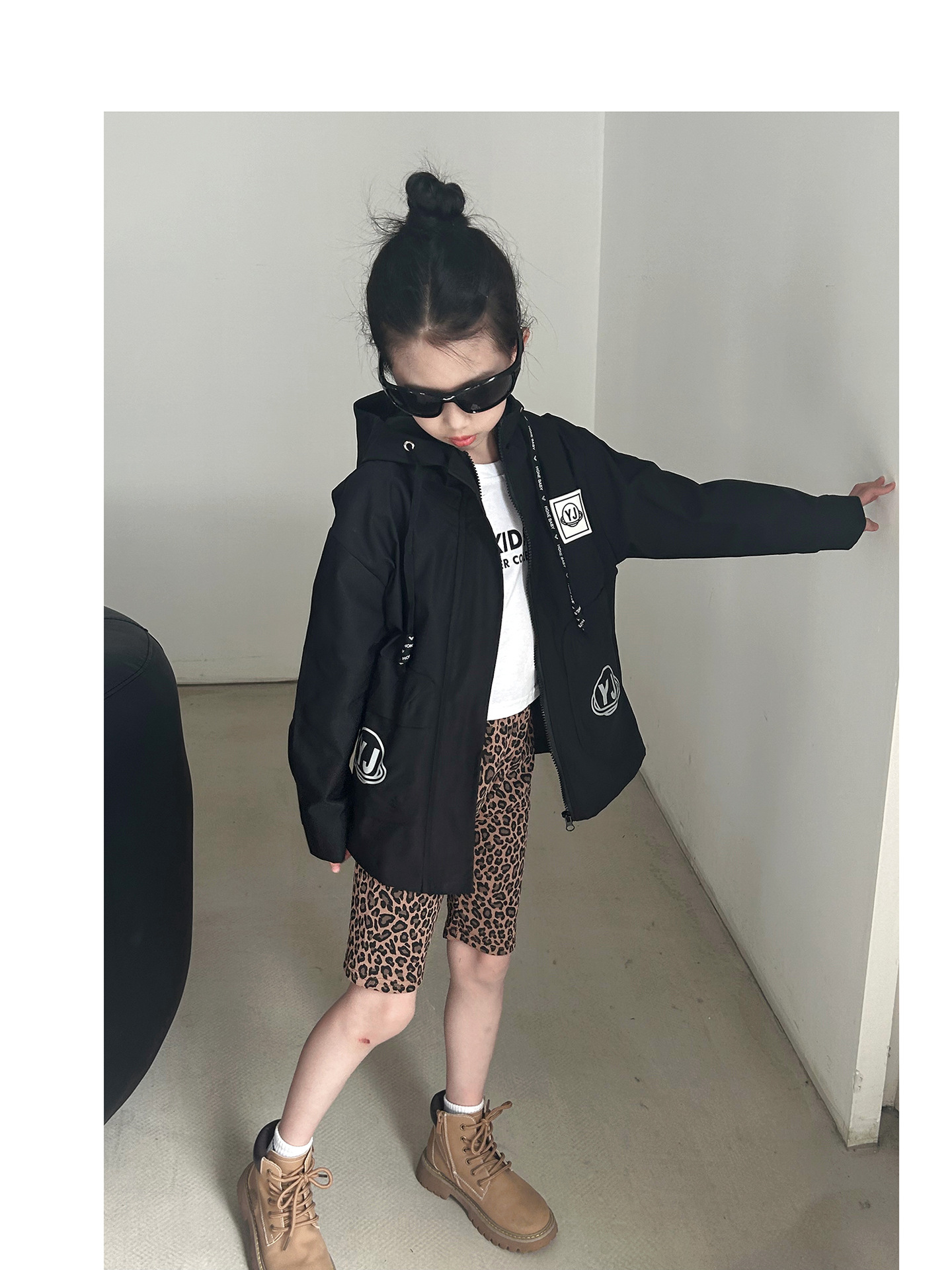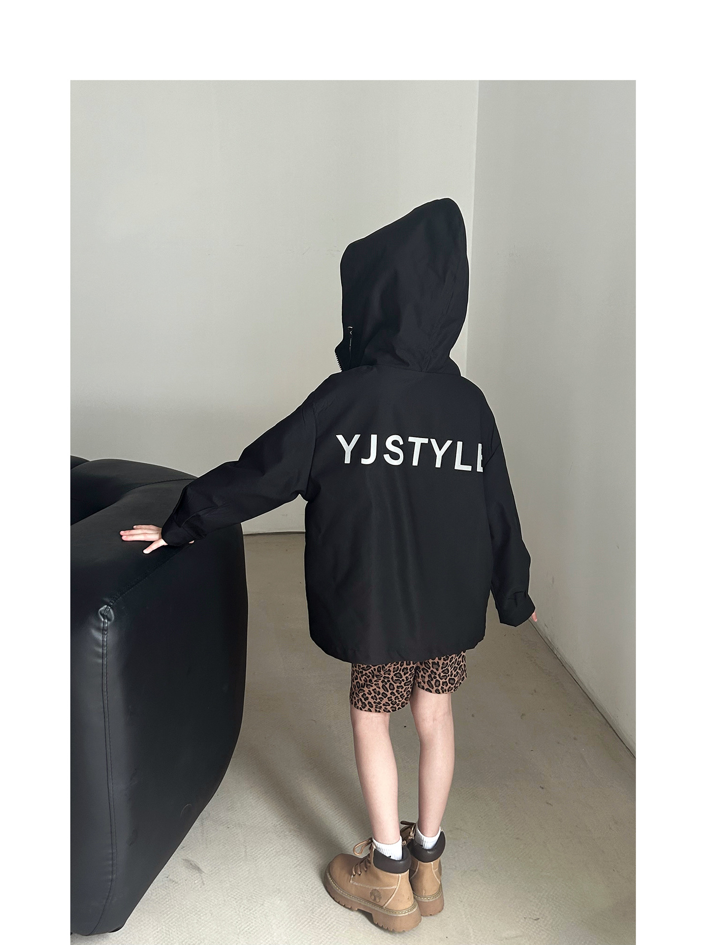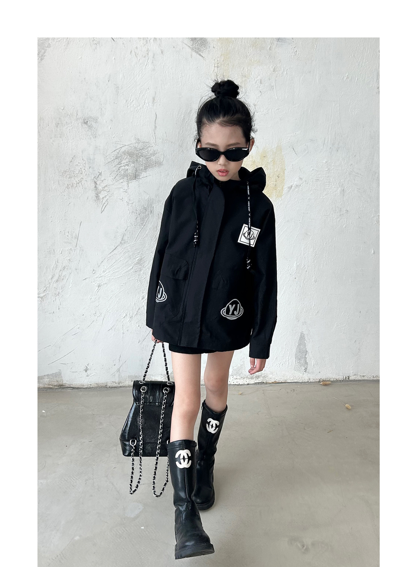 여자 블랙 자켓 어린이 후드 자켓 여자 패션 자켓 프린트 탑 캐주얼 윈드 브레이커
