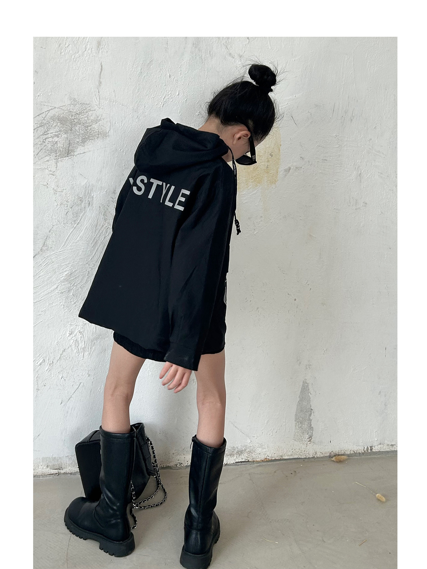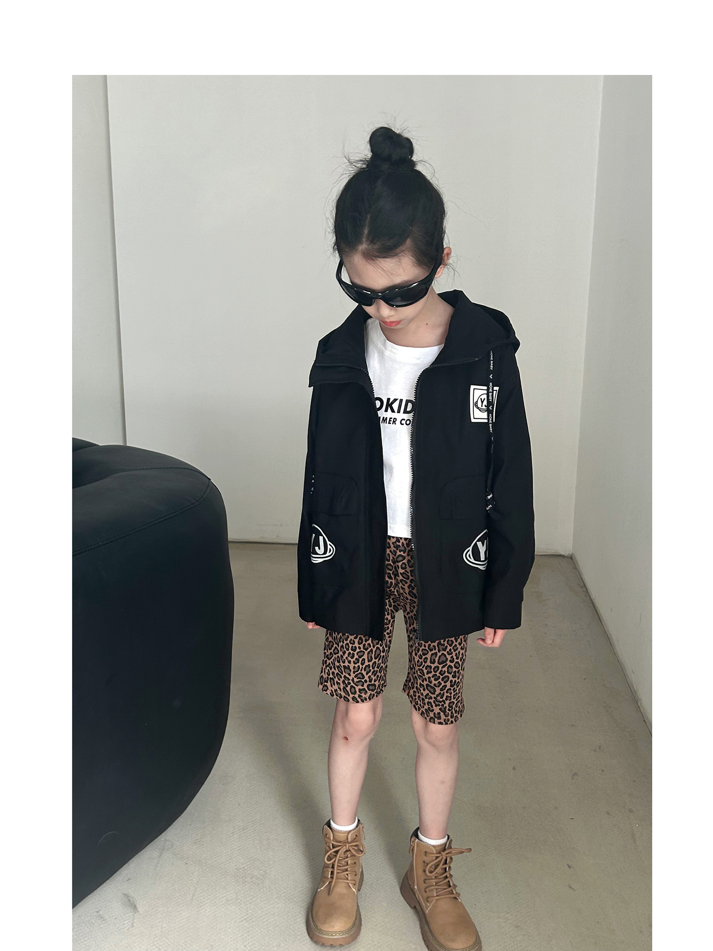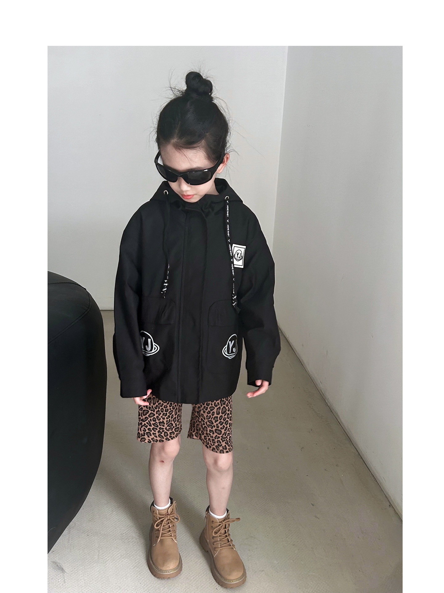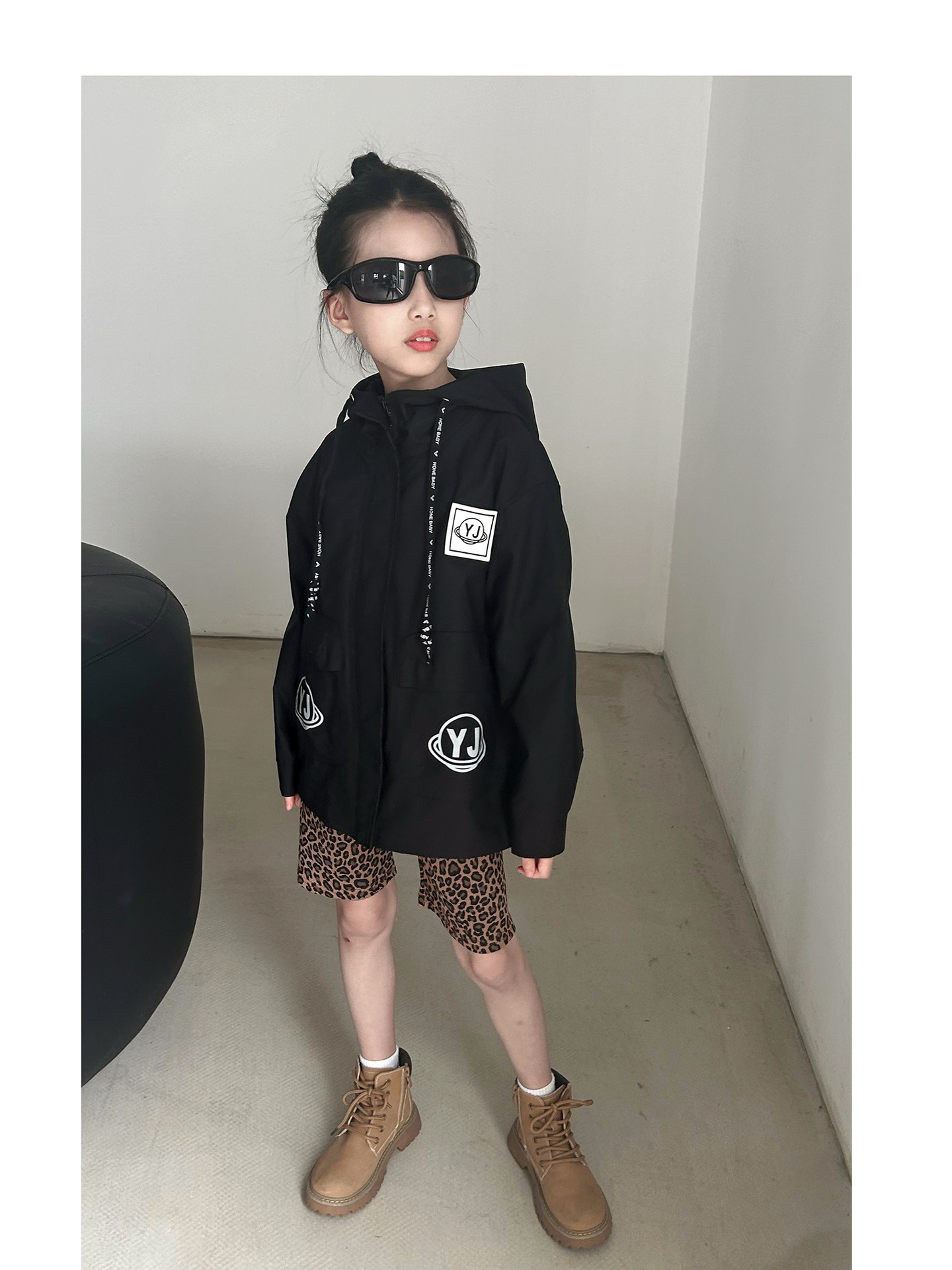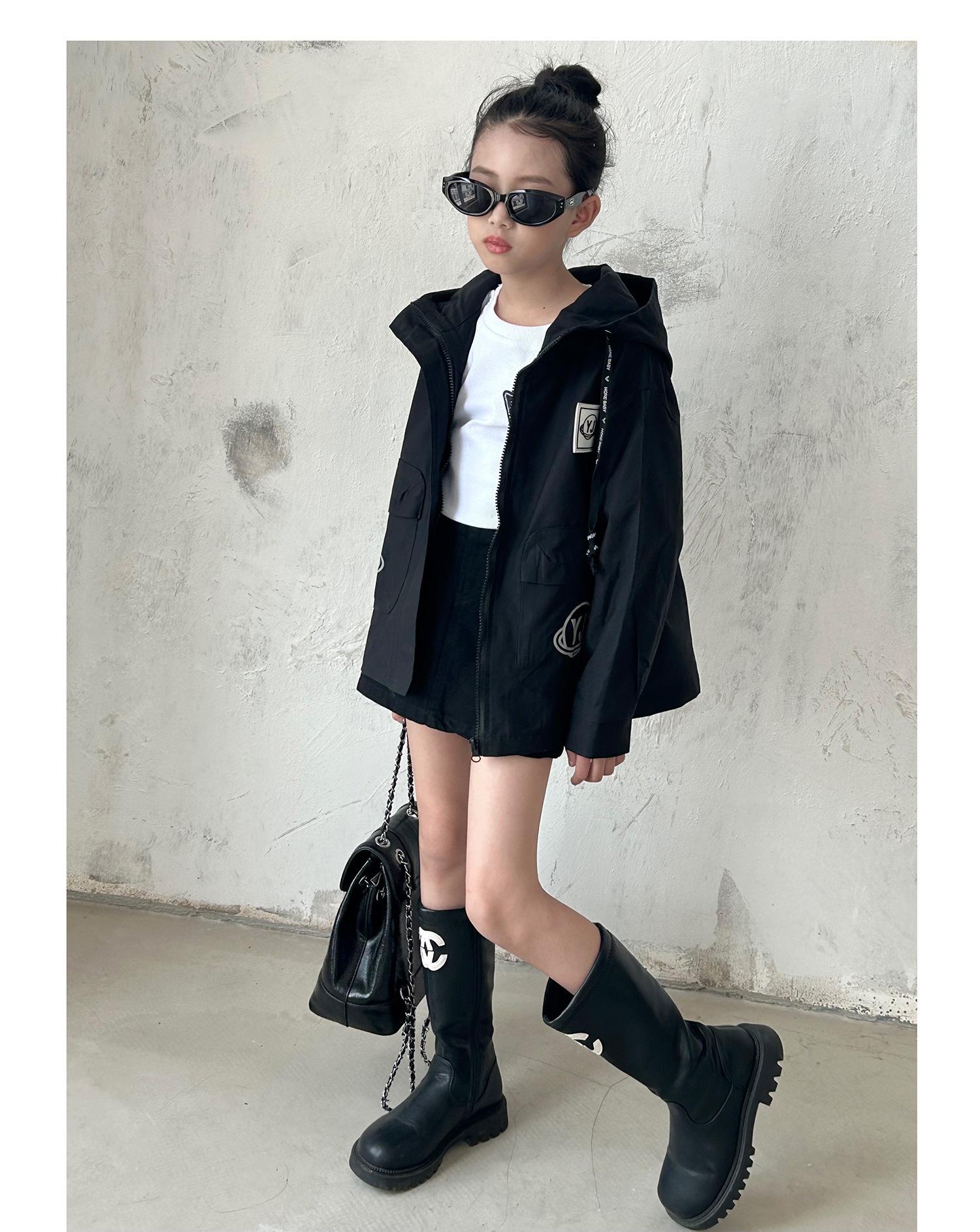 여자 블랙 자켓 어린이 후드 자켓 여자 패션 자켓 프린트 탑 캐주얼 윈드 브레이커