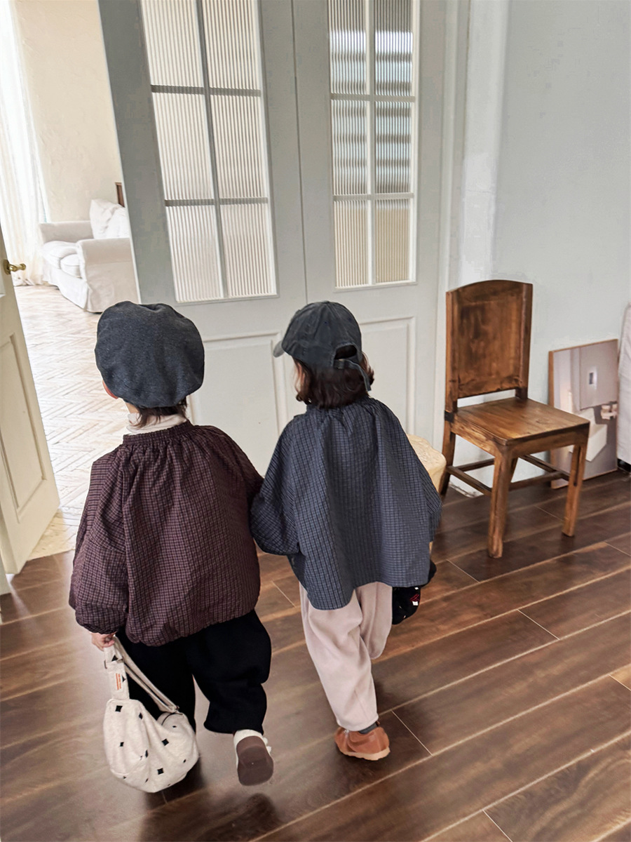 Jiaye Children's Products 2025 어린이 가을 새로운 느슨한 격자 무늬 재킷 남성과 여성의 아기 짧은 빵 재킷