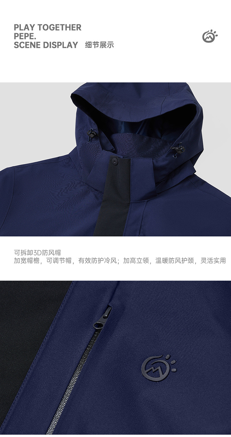 2024 가을과 겨울 새로운 야외 남성 양털 2 피스 재킷 3 층 접착 방풍 및 방수 등산 세트