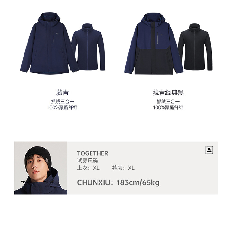 2024 가을과 겨울 새로운 야외 남성 양털 2 피스 재킷 3 층 접착 방풍 및 방수 등산 세트스토어 가기