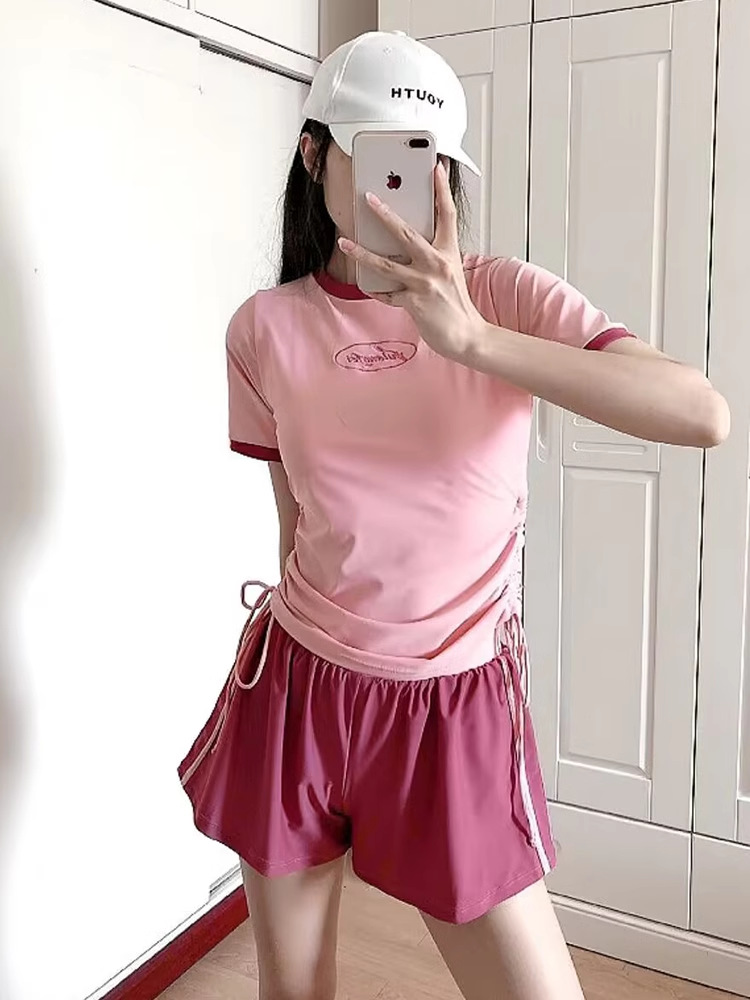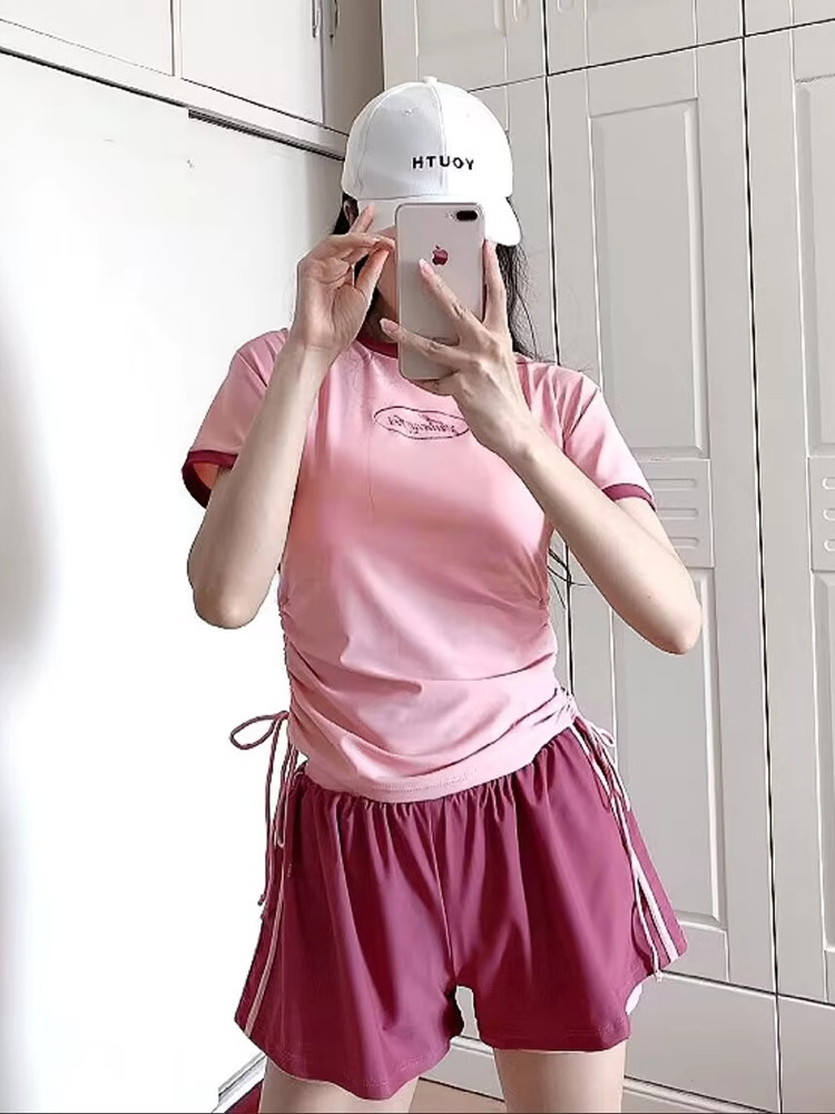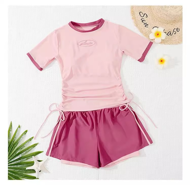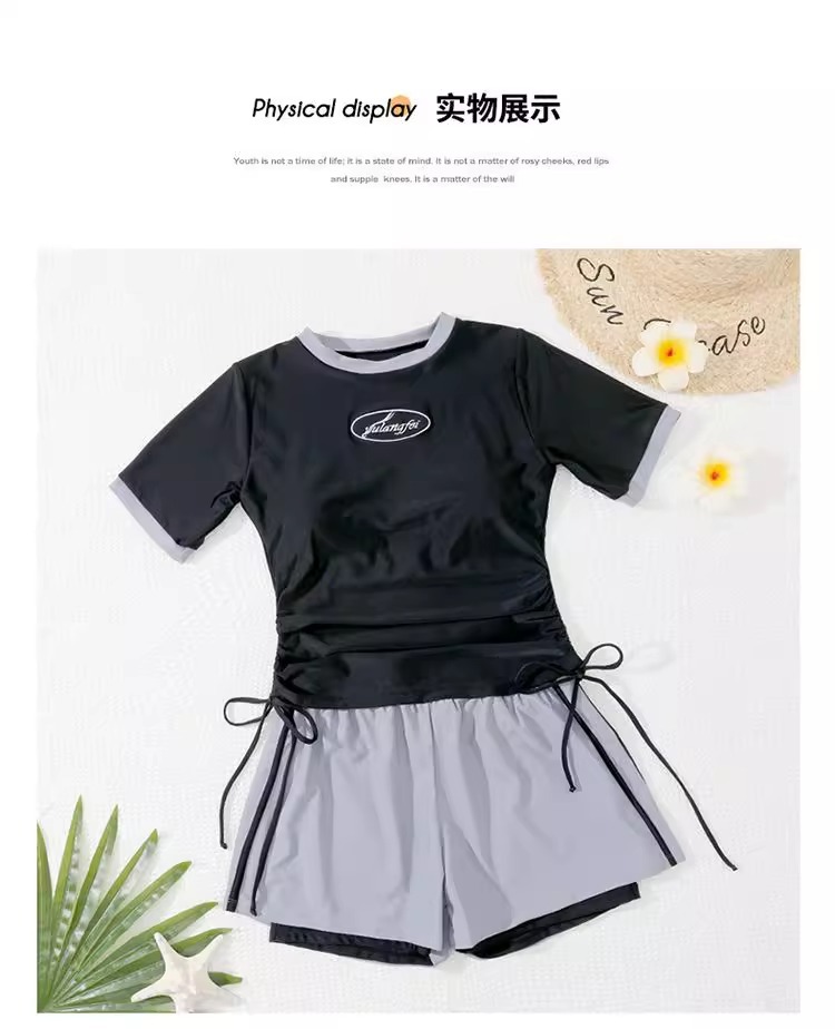 2025 새로운 스포츠 수영복 여성 대형 지방 mm 살을 덮는 반팔 분할 보수적 배꼽 덮는 슬리밍 수영복스토어 가기