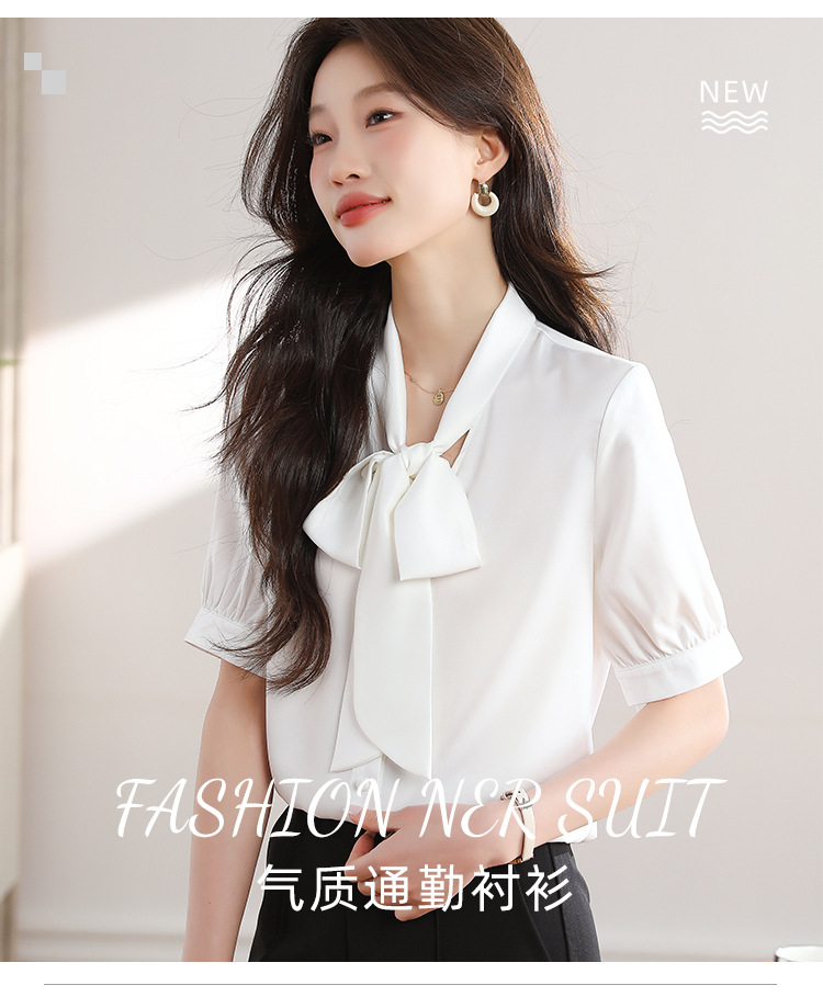 국경 간 [한국 그물 폭발] 나비 셔츠 여성용 긴팔 화이트 봄과 가을 최고급 패션 새틴 셔츠스토어 가기