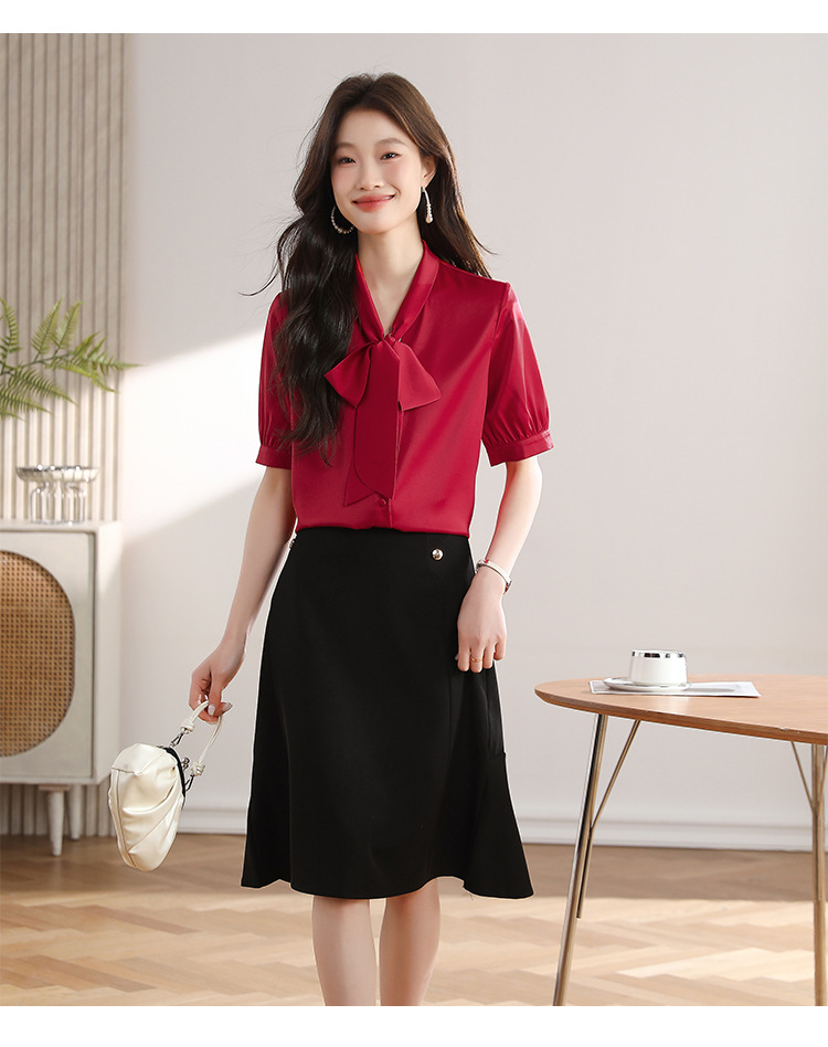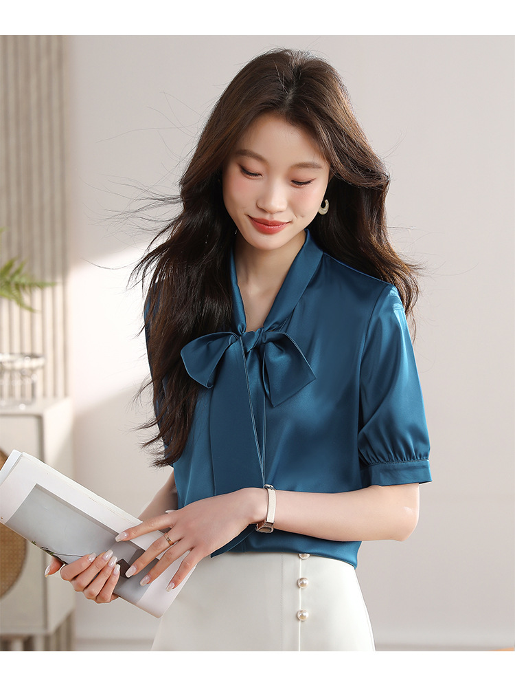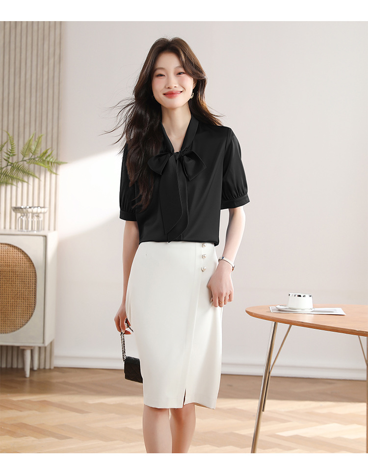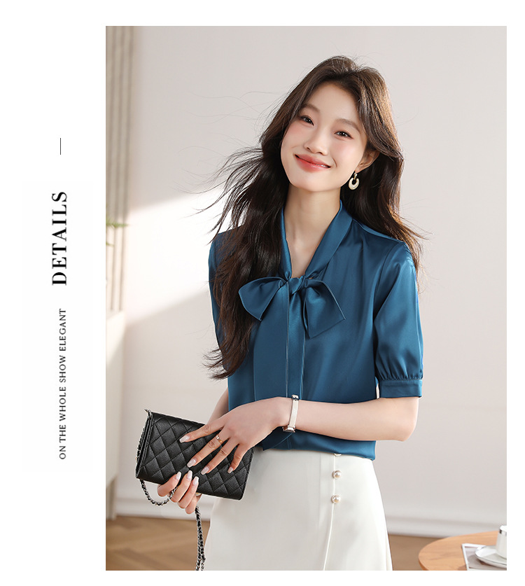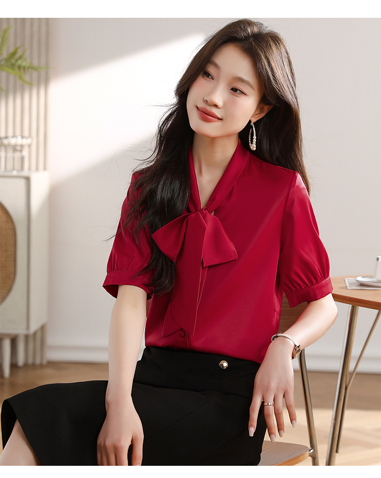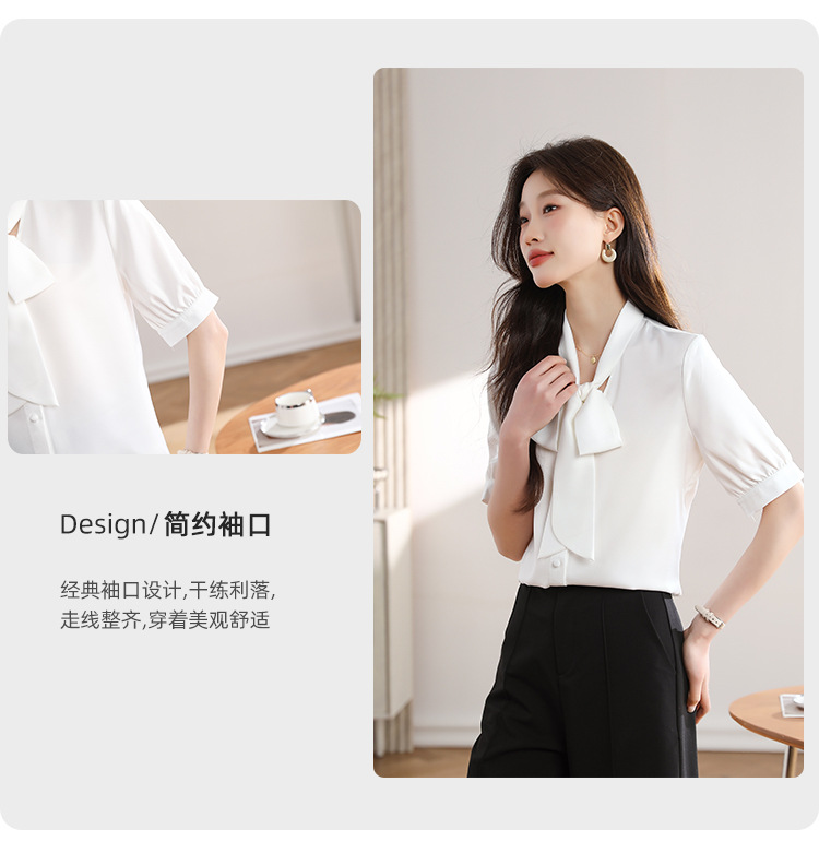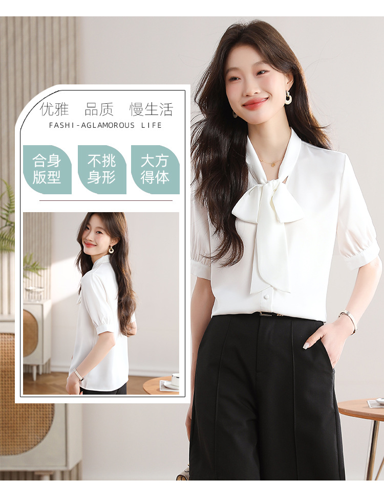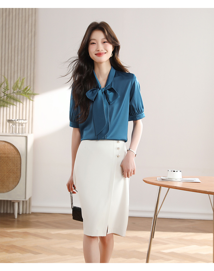 국경 간 [한국 그물 폭발] 나비 셔츠 여성용 긴팔 화이트 봄과 가을 최고급 패션 새틴 셔츠