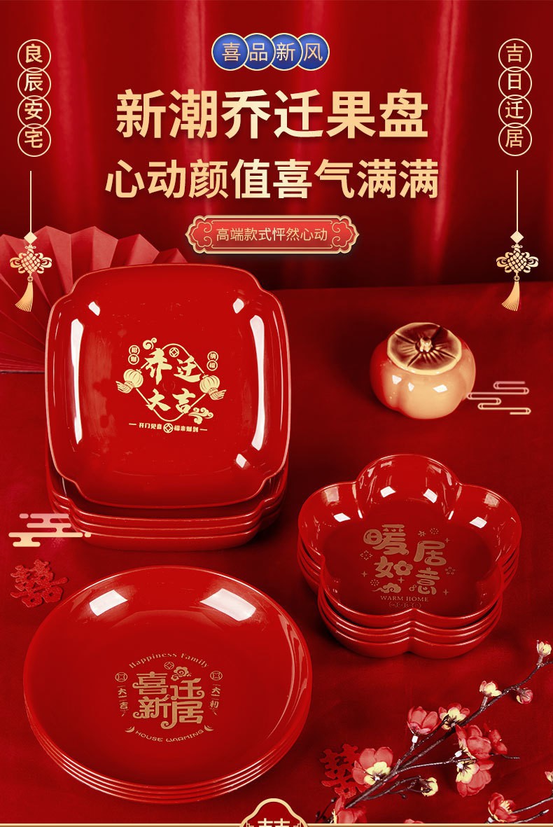 새 집으로 이사하기위한 과일 접시 새 집으로 이사하기위한 빨간 과일 접시 장식 배열 개봉 및 결혼식 과일 접시를위한 말린 과일 스낵 플레이트스토어 가기
