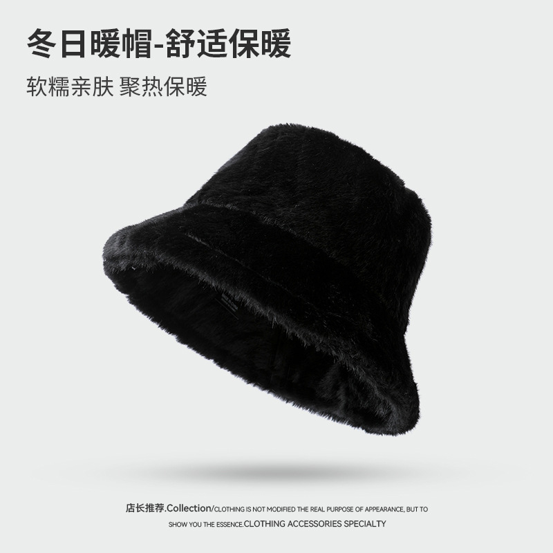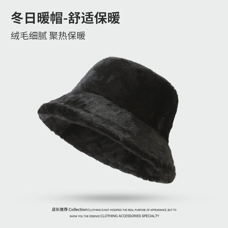 • 3288PC - 인조 밍크 버킷햇 - 블랙