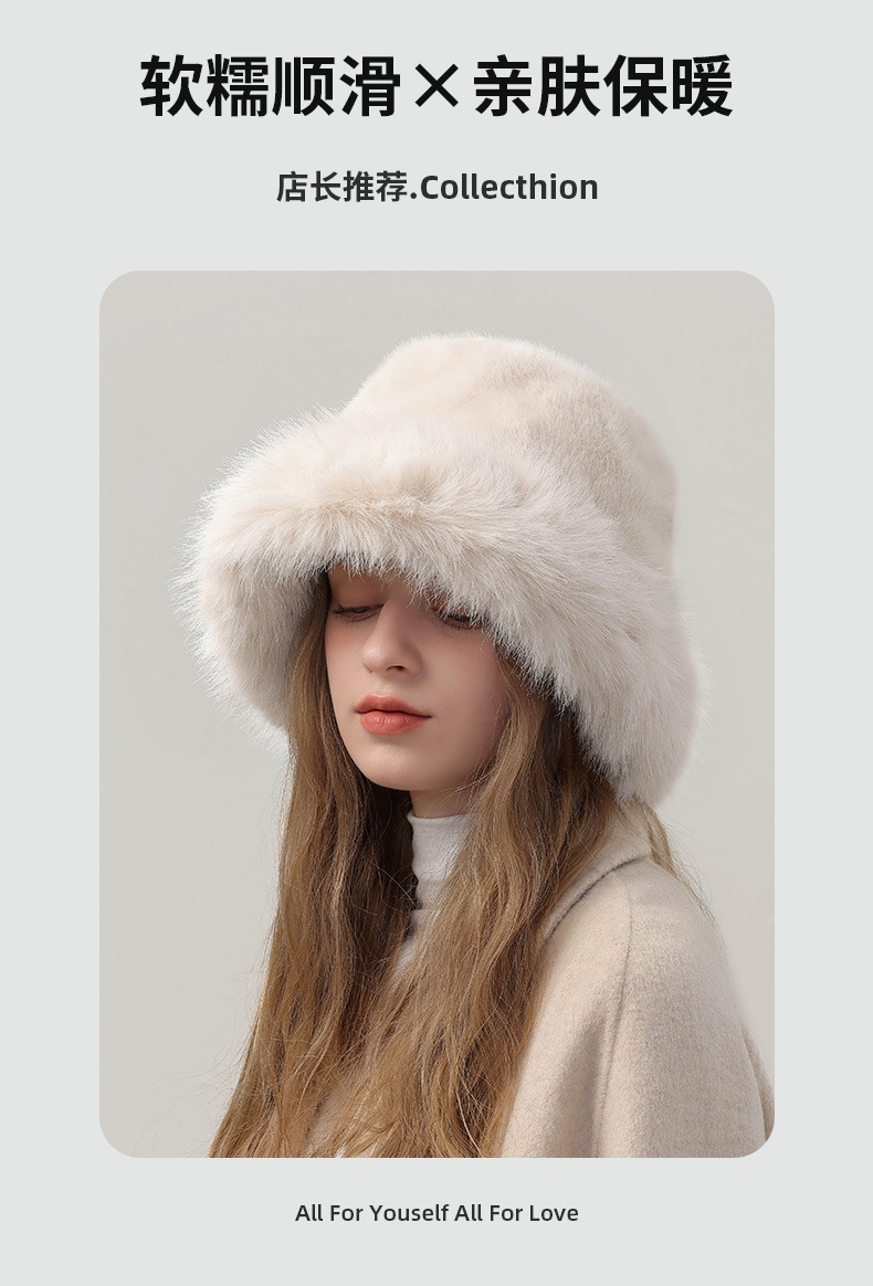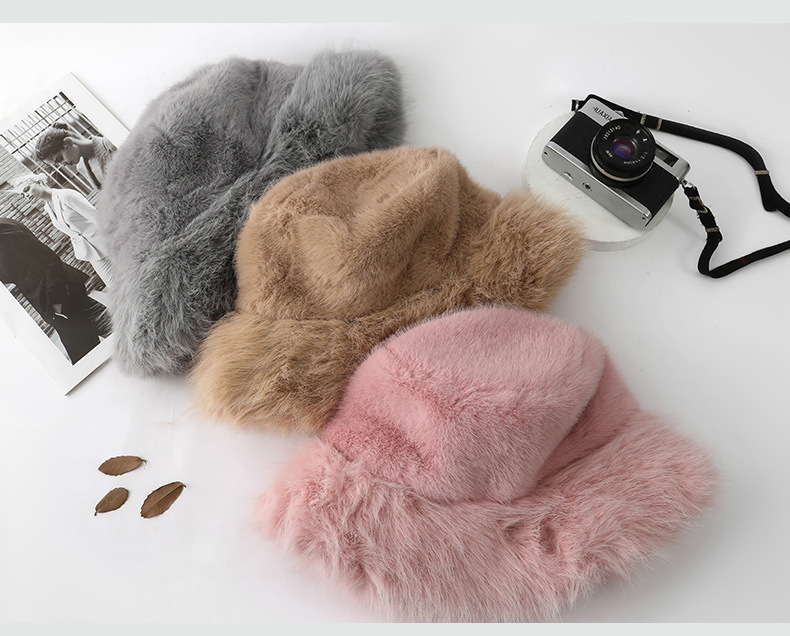 모조 토끼 모피 모자 여성의 가을과 겨울 봉제 어부 모자 단색 대외 무역 따뜻한 차가운 증거 패션 높은 감각 분지 모자스토어 가기