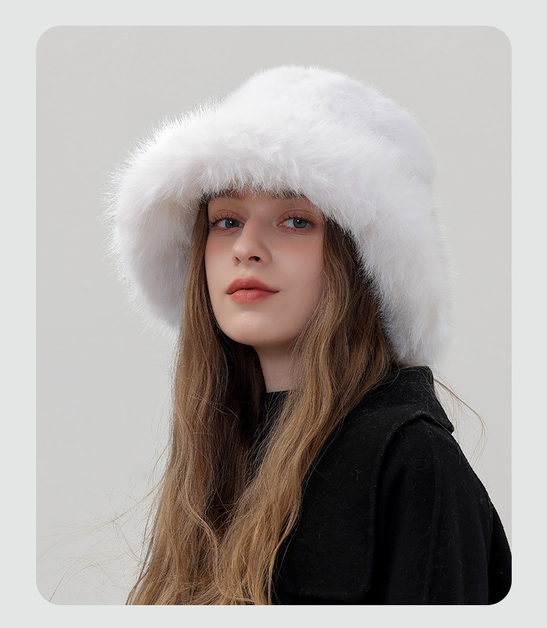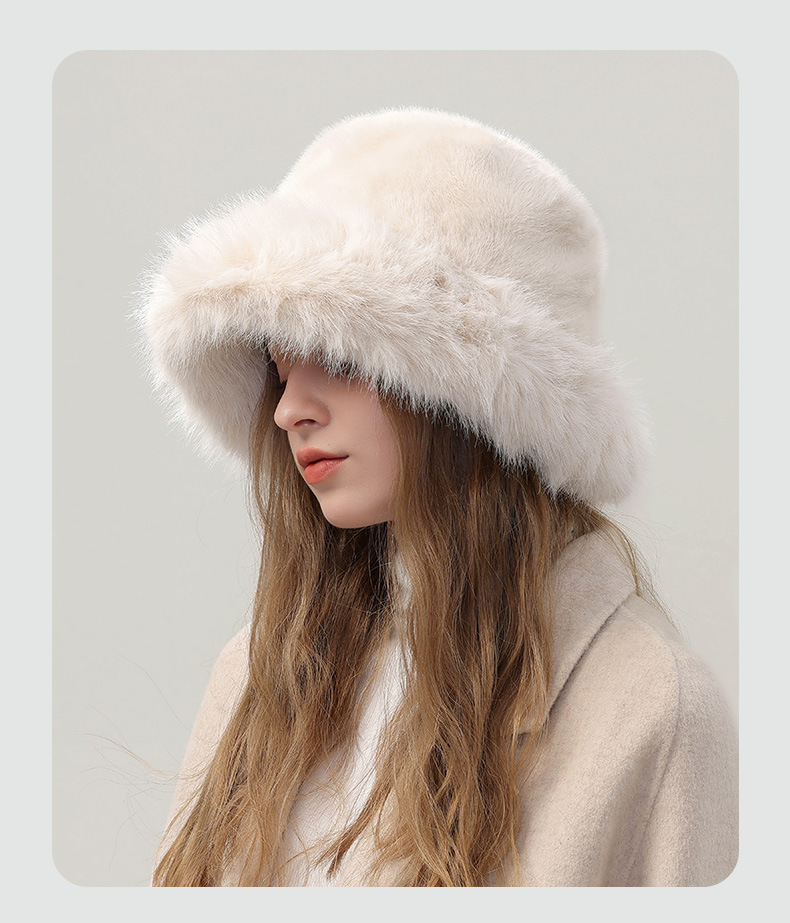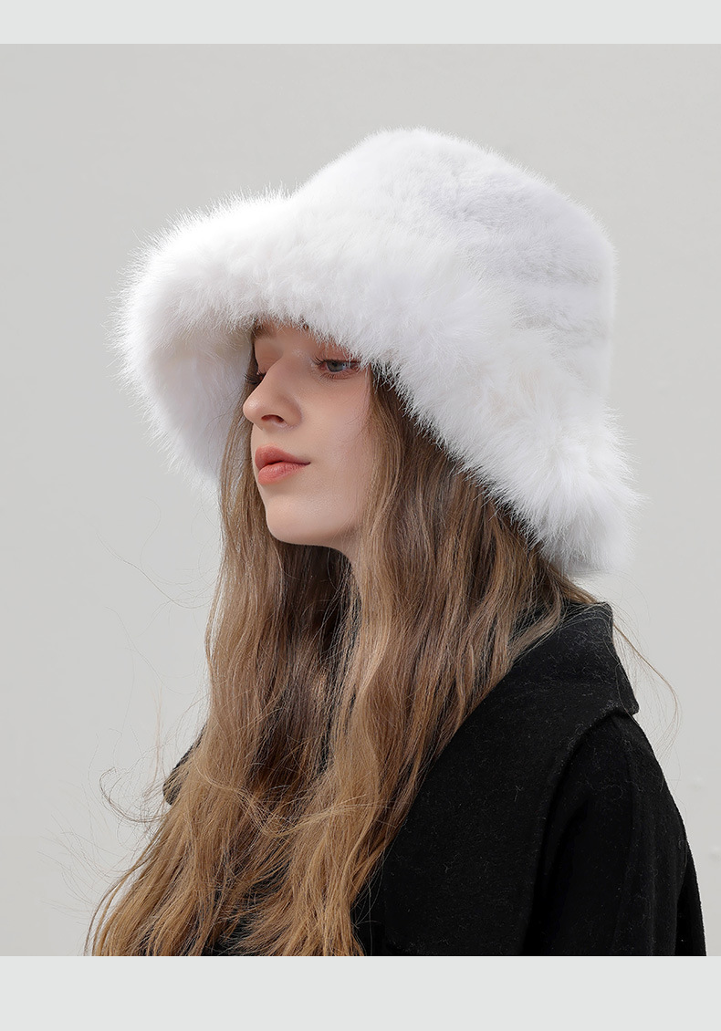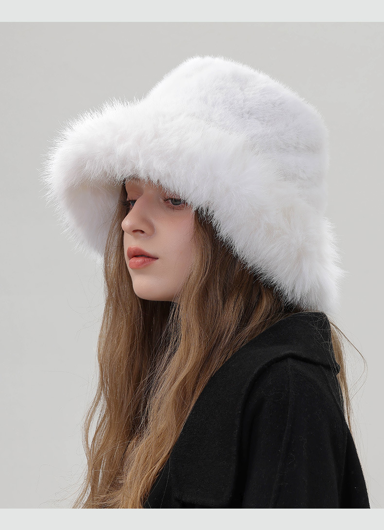 • 24244PC - 인조 밍크 돔형 모자 - 화이트