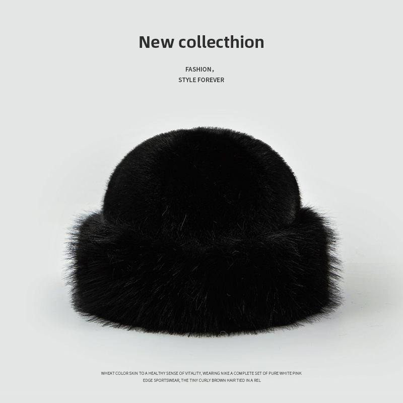 • 24244PC - 인조 밍크 돔형 모자 - 블랙