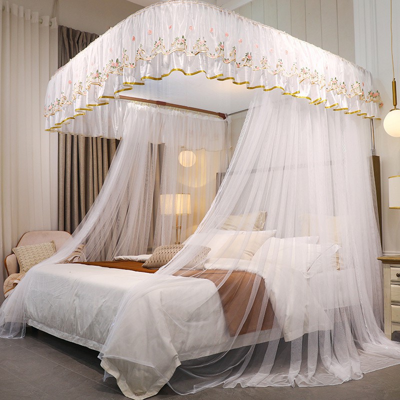 새로운 U 자형 레일 모기장 더블 가정용 3 도어 궁전 아기 모기장 스테인레스 스틸 모기장 선반 1.8 침대