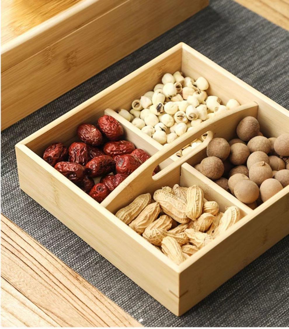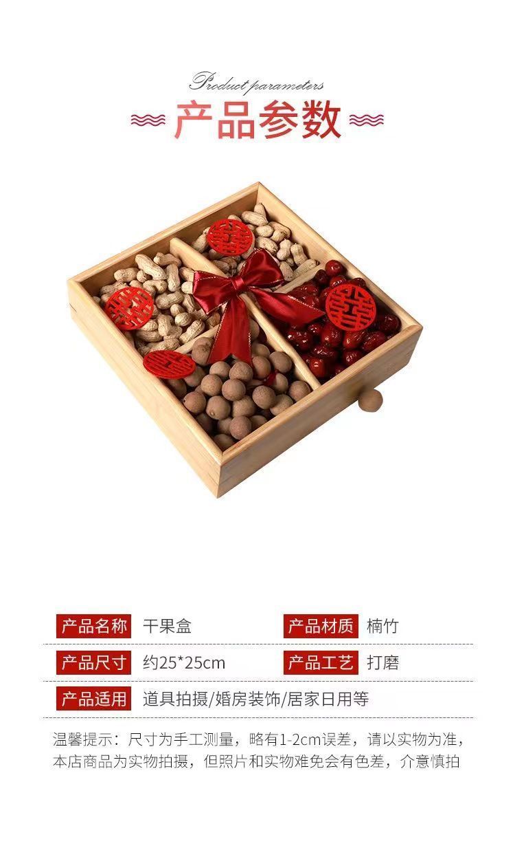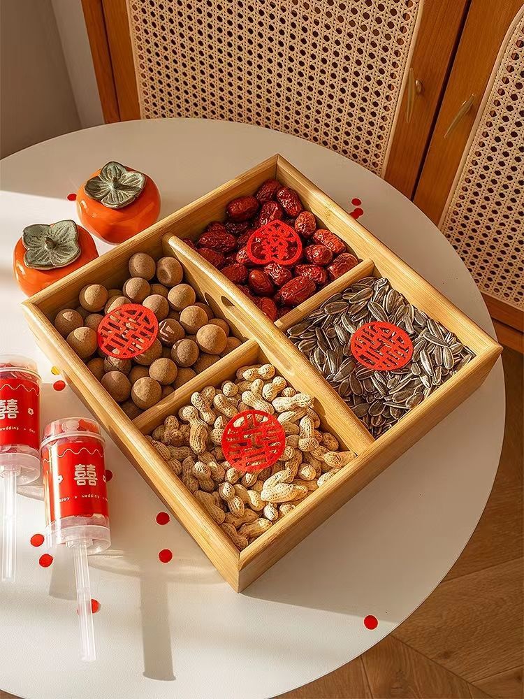 단단한 나무 말린 과일 상자, 거실 가정용 사탕 및 조롱박 씨앗 상자, 분할 휴대용 호텔 스낵 트레이, 새해 상품, 중국 견과류 상자스토어 가기