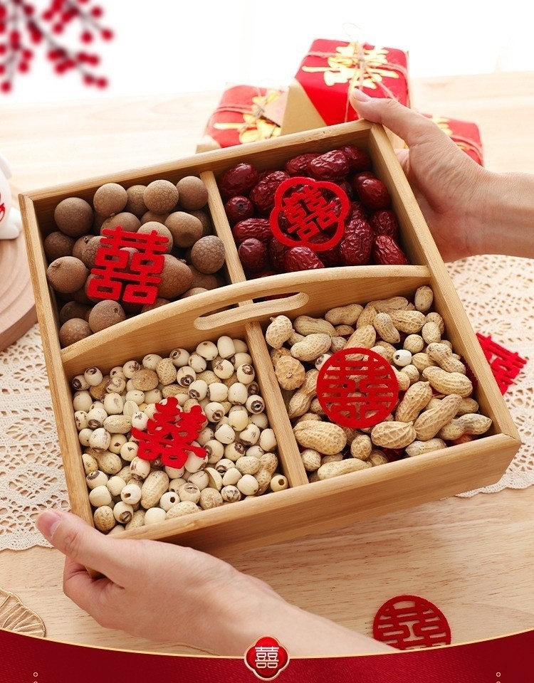 단단한 나무 말린 과일 상자, 거실 가정용 사탕 및 조롱박 씨앗 상자, 분할 휴대용 호텔 스낵 트레이, 새해 상품, 중국 견과류 상자