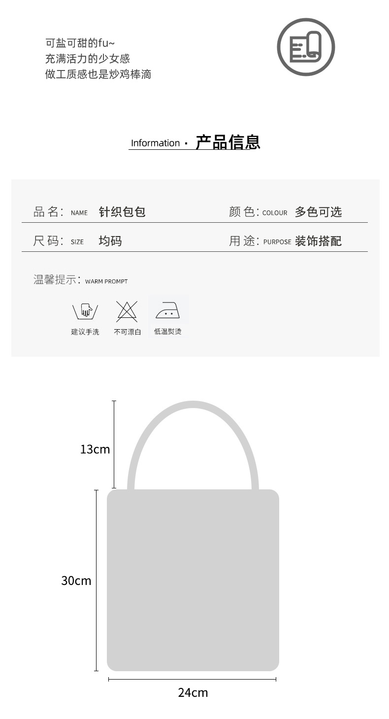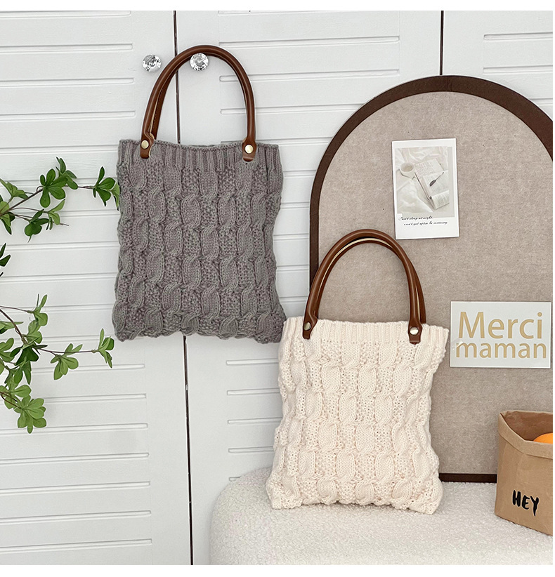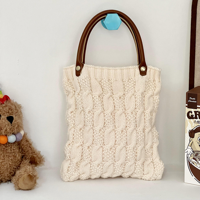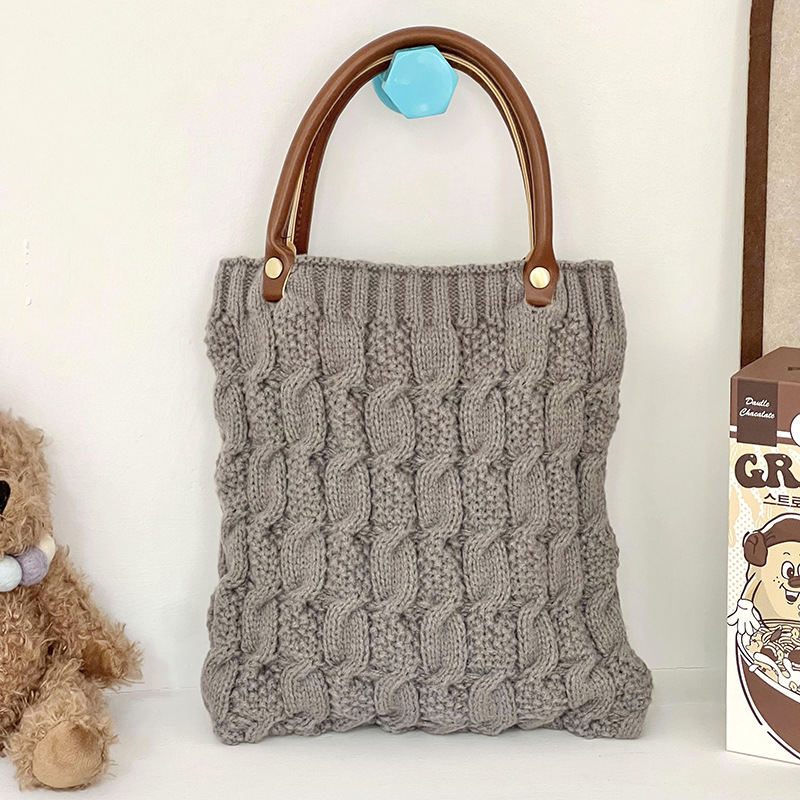작은 광장 가방 여성 핸드백 한국 2024 새로운 일본 가을과 겨울 손 니트 양모 손 가방 속옷 가방스토어 가기