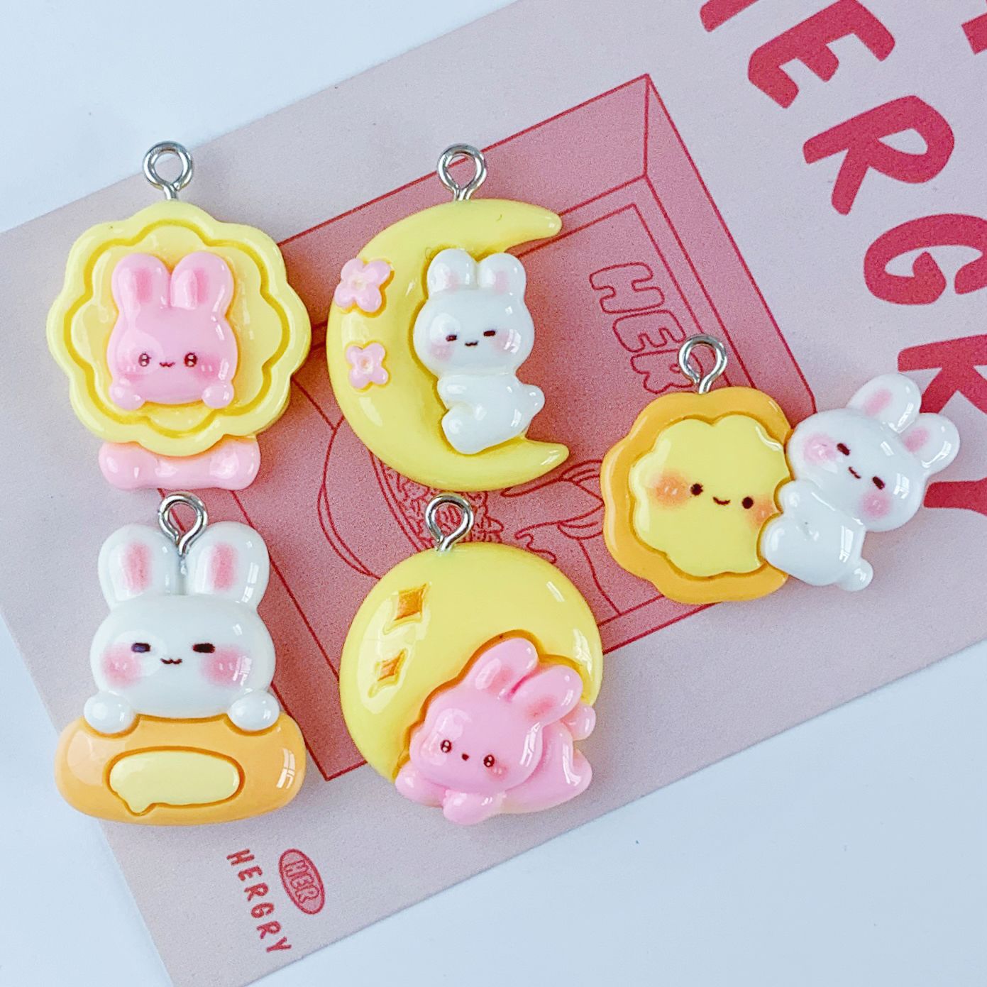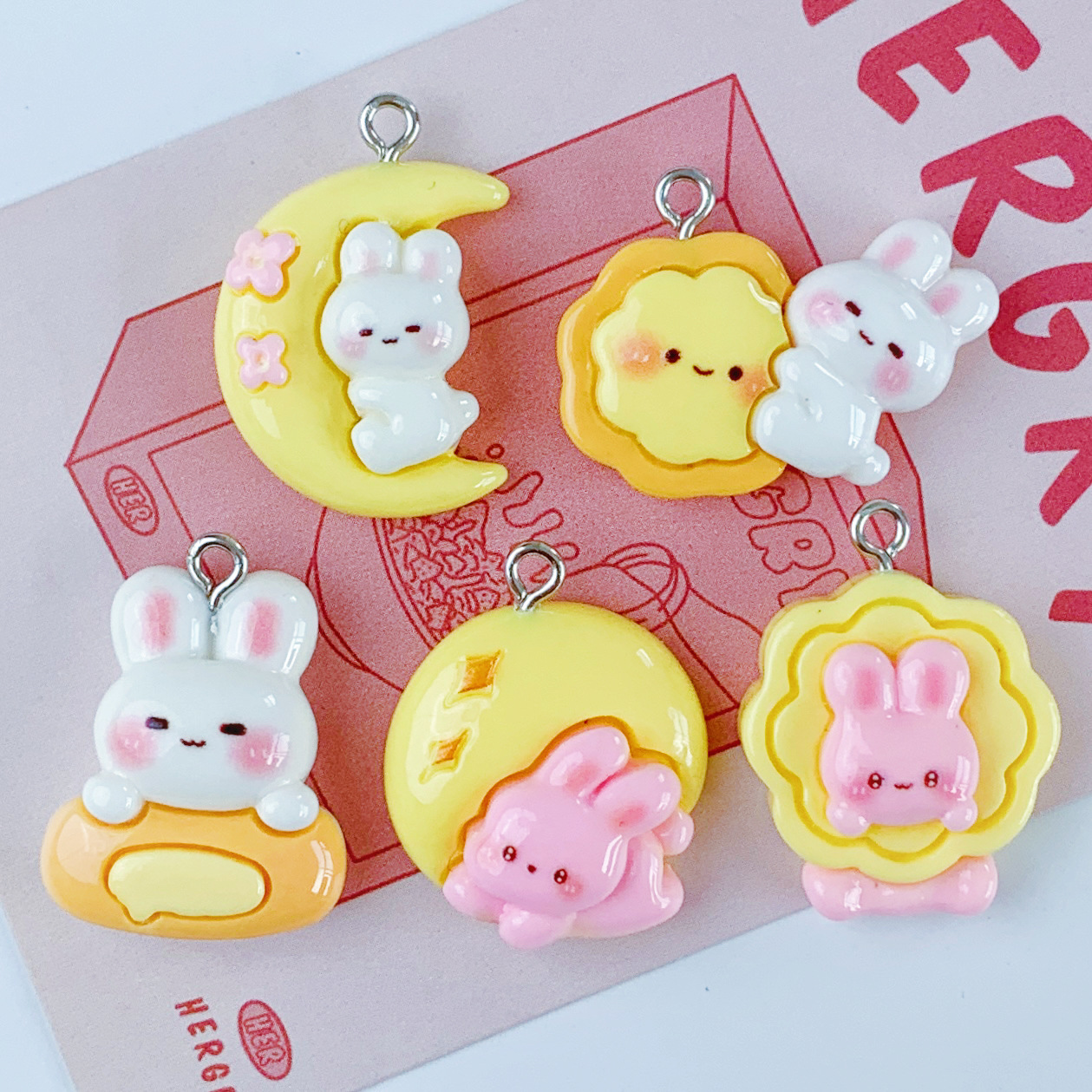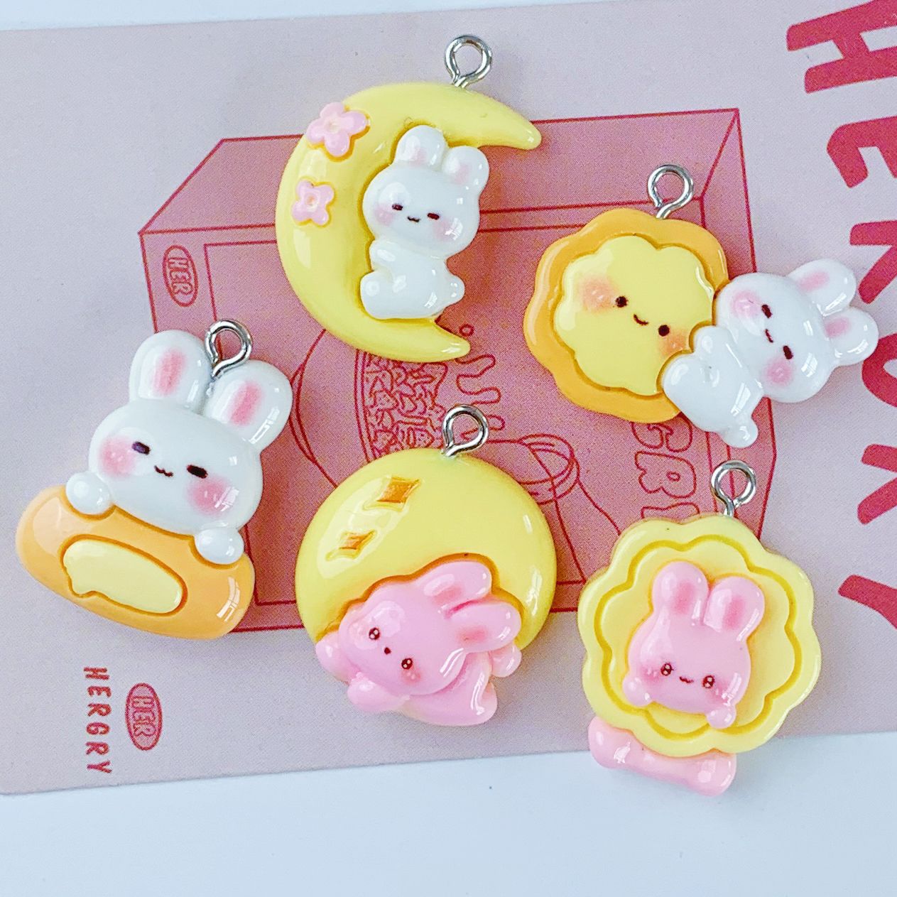 중추절 달 케이크 토끼 문 시리즈 수지 액세서리 DIY 보석 펜던트 펜던트 키 체인 액세서리