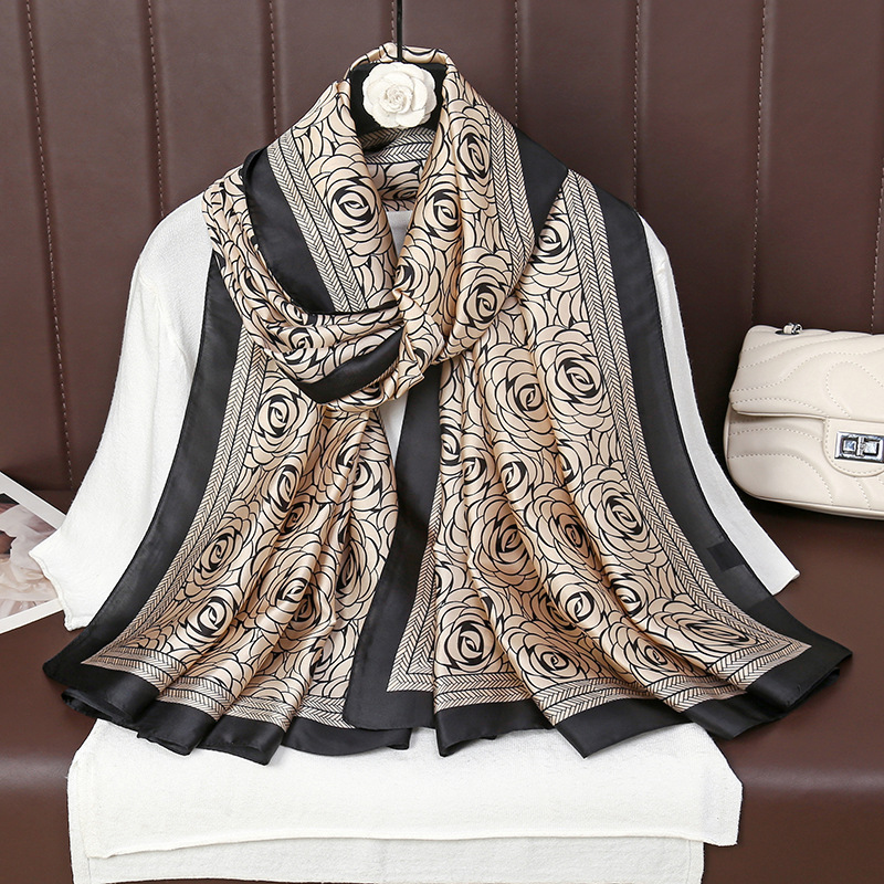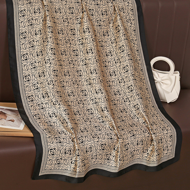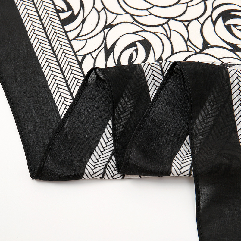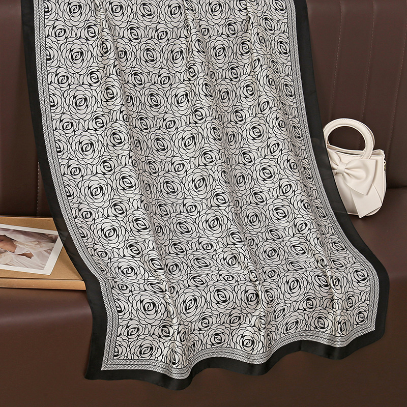 간단한 흑백 일반 우아한 꽃 인쇄 실크 스카프 봄 여름 가을 목 보호 여성의 얇은 목도리