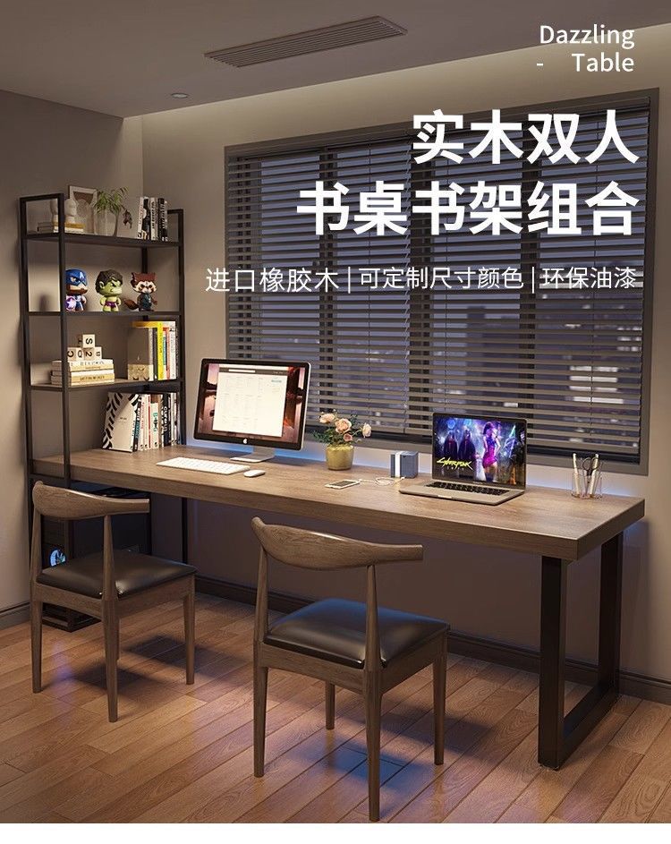 선반 쓰기 테이블 긴 테이블 큰 보드 테이블을 가진 가득 차있는 단단한 나무 두 배 컴퓨터 책상 책장 통합 테이블 긴 테이블 연구 테이블스토어 가기