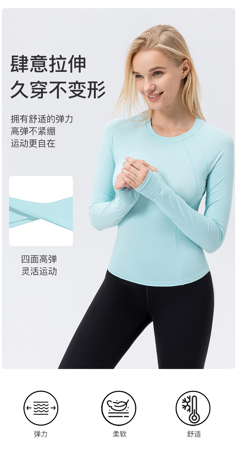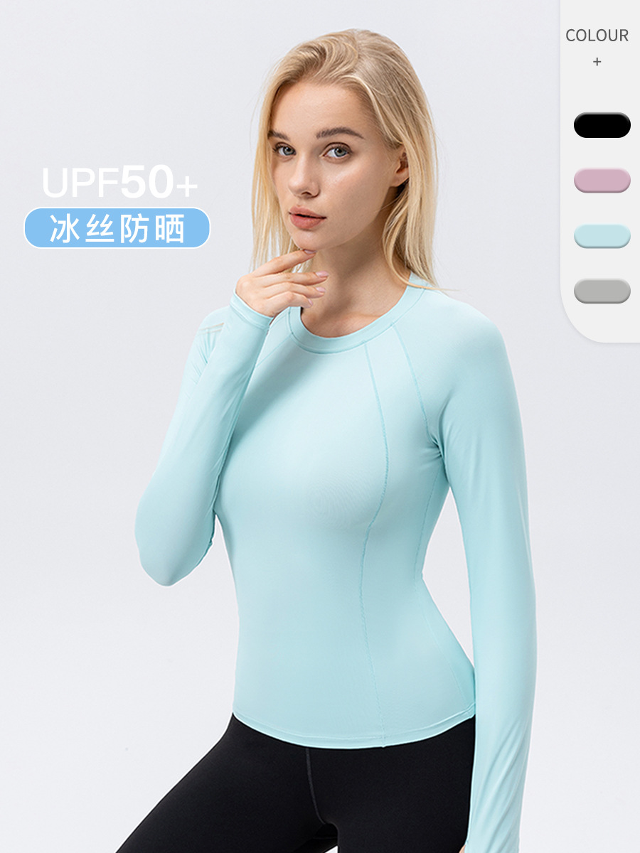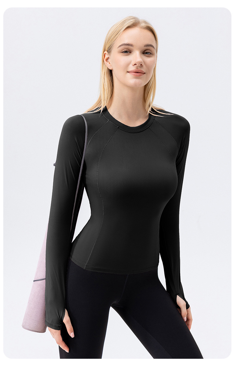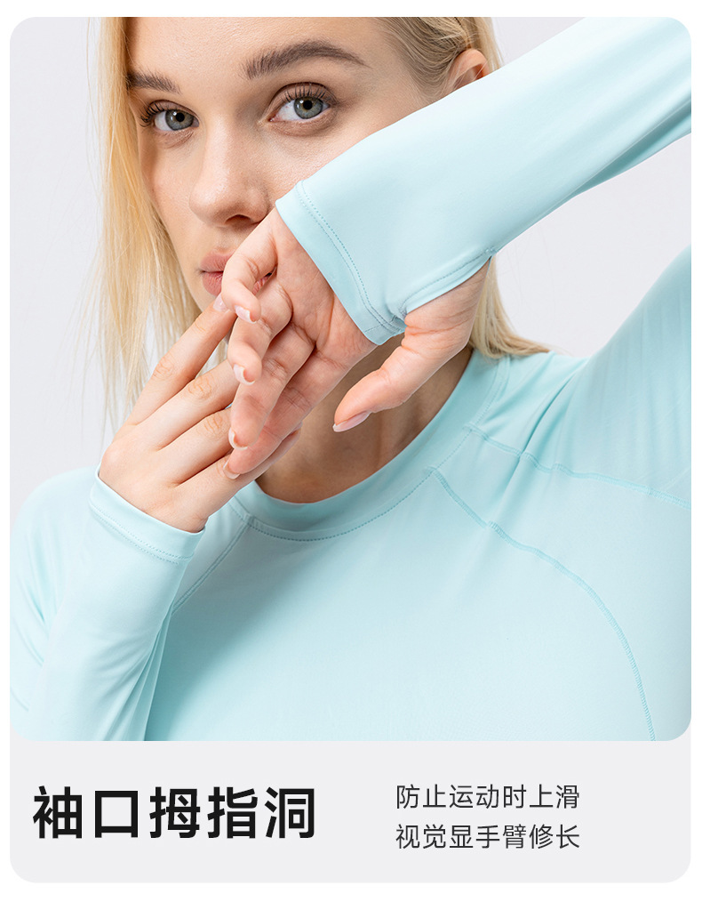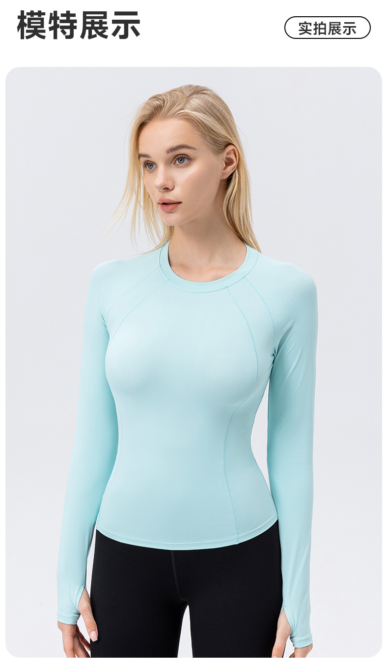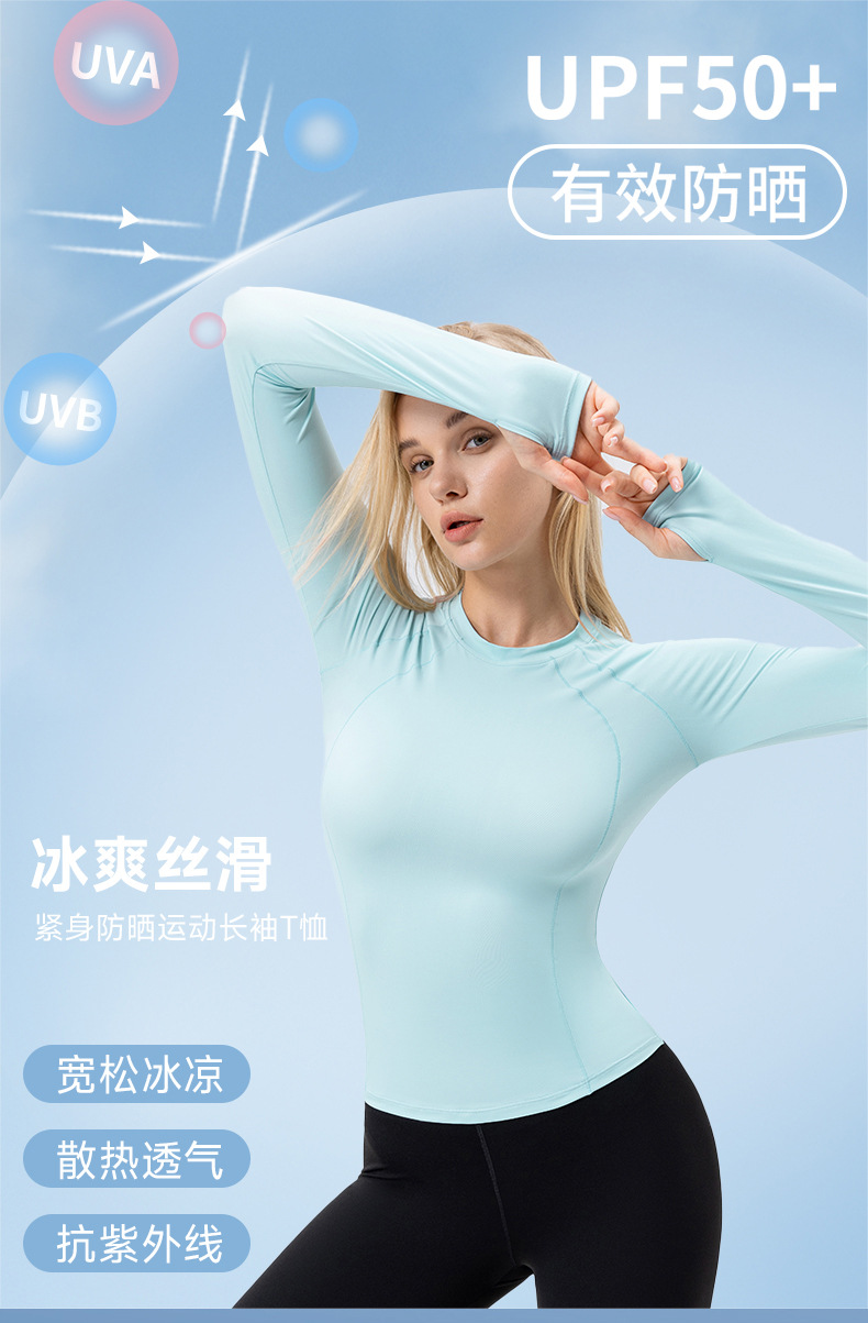 여성용 선 스크린 타이트 요가 세트 긴팔 멋진 통기성 스포츠 티셔츠 러닝 피트니스 탑 UV 보호 42551스토어 가기
